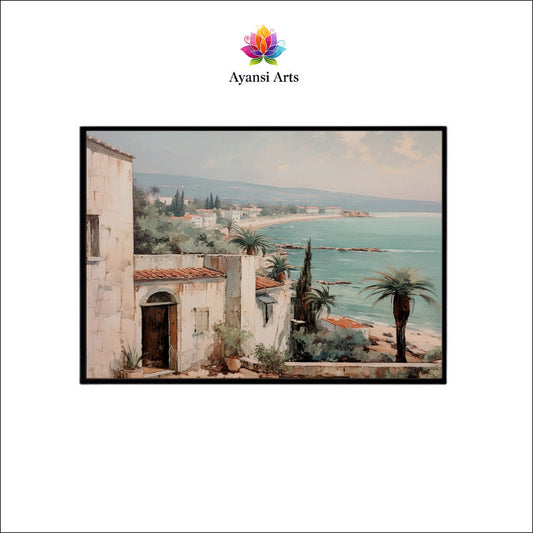 Transport yourself to the sun-drenched shores of the Mediterranean with this serene canvas digital painting...