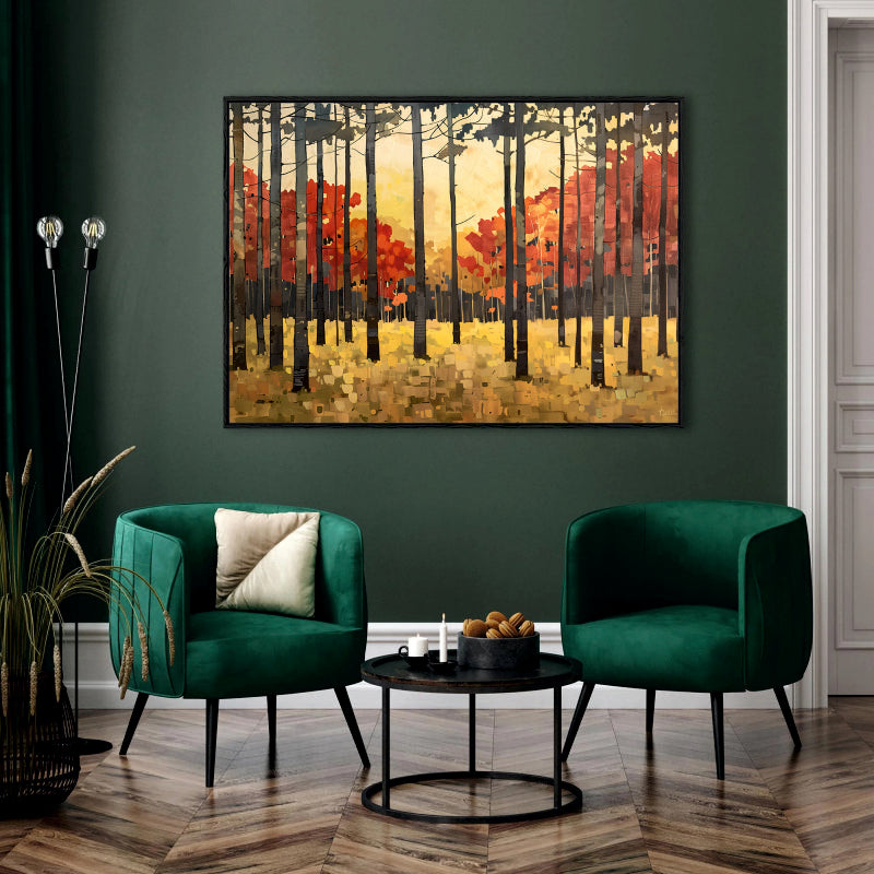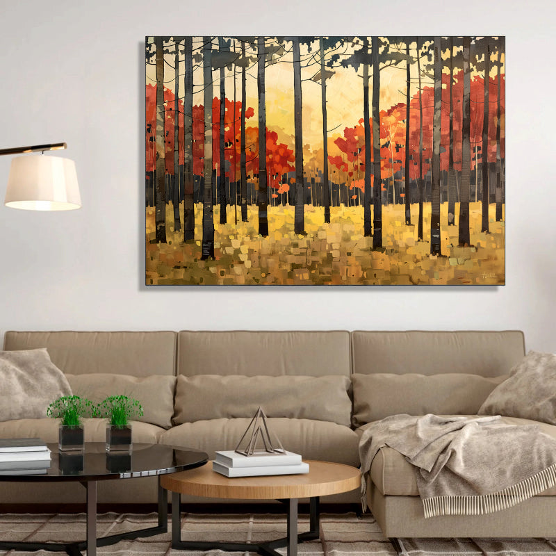 Autumnal Echoes Abstract Canvas Digital Painting - Forest Landscape
