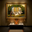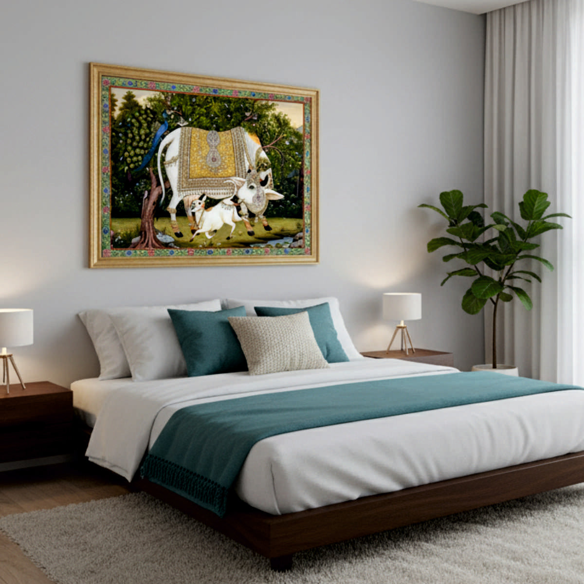 Ayansi Arts – Divine Kamdhenu Cow Canvas Painting | Symbol of Prosperity & Positivity (Without Frame)