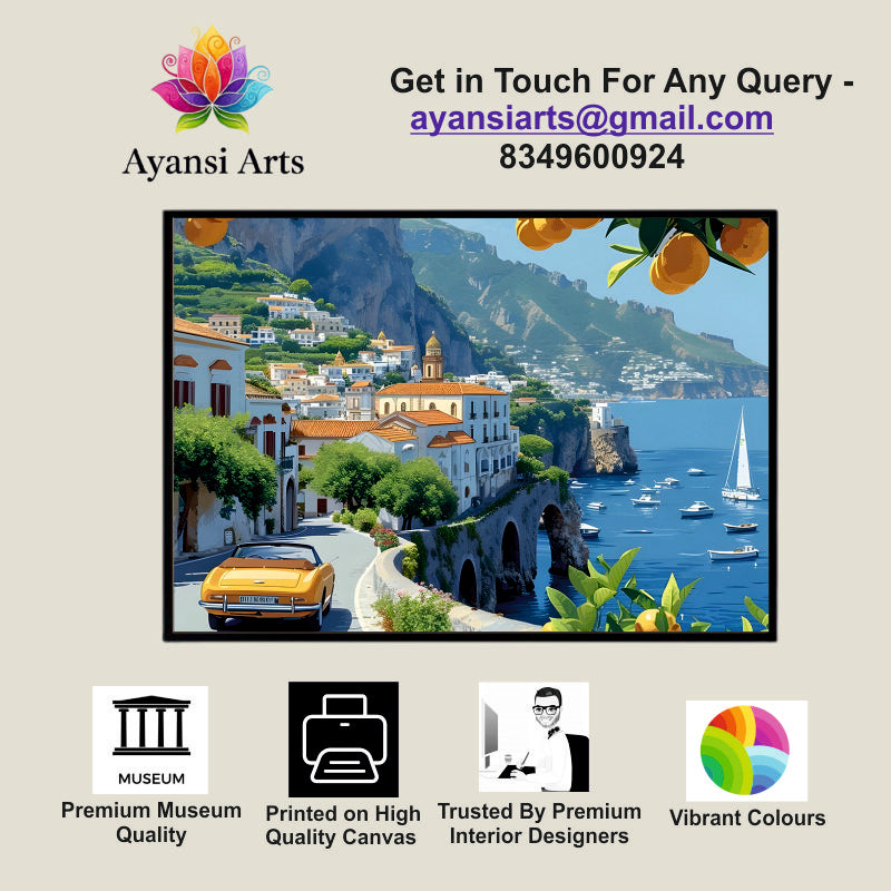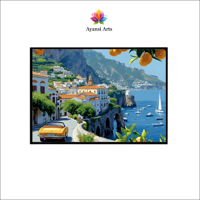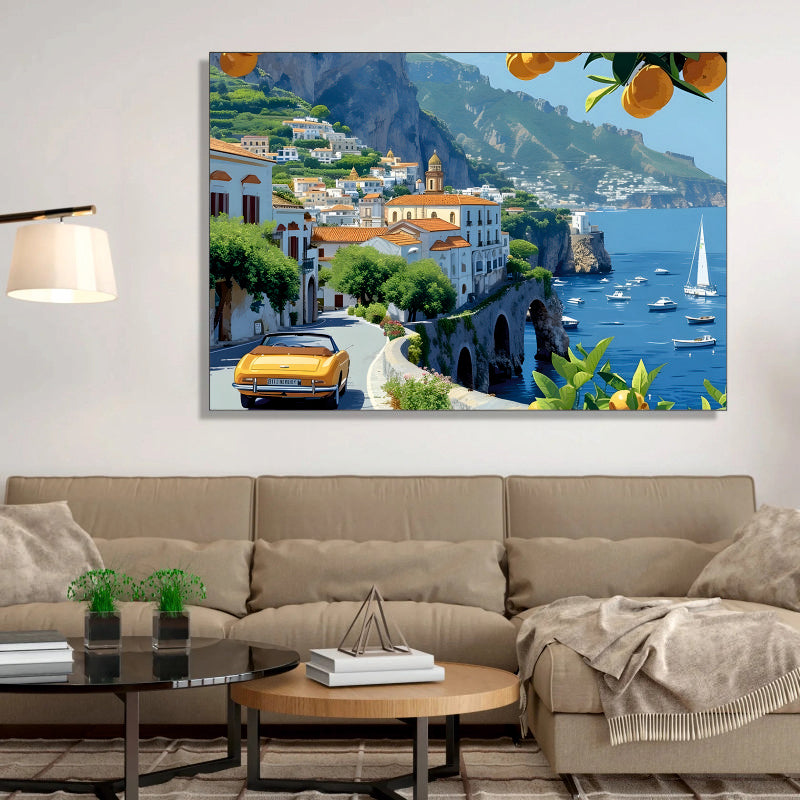 Azure Coast Drive Canvas Digital Painting - Italian Riviera Vista