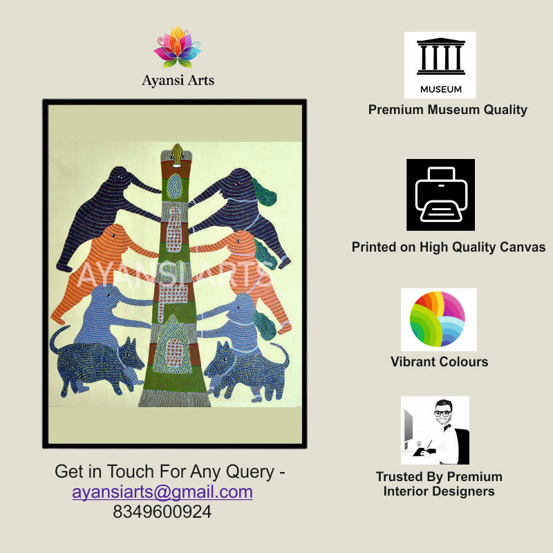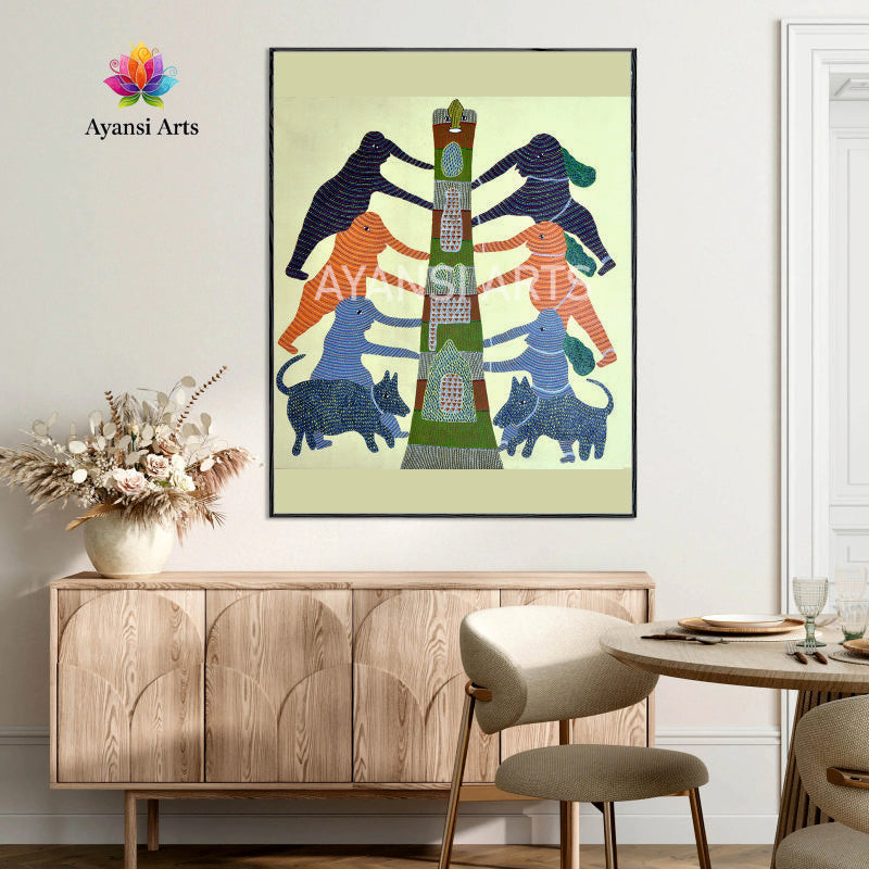 Gond Art Community and Totem Canvas Painting Art by Ayansi Arts