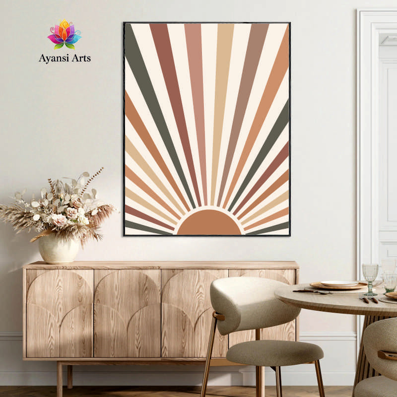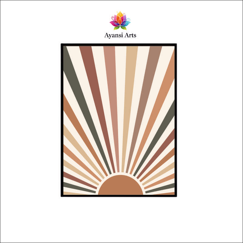 Boho Sunrise - Warm Earth Tones Sunburst Canvas Digital Painting by Ayansi Arts