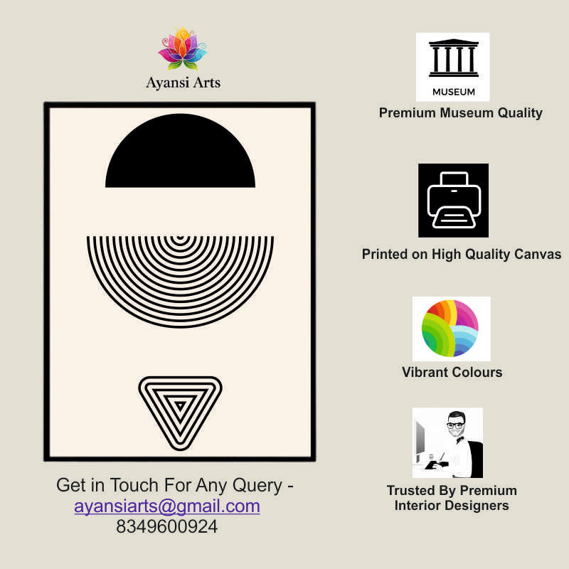 Geometric Harmony - Minimalist Abstract Black & White Canvas Digital Painting by Ayansi Arts