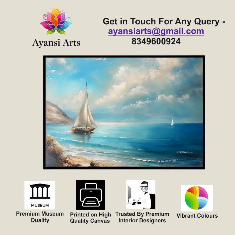 Coastal Serenity Canvas Digital Painting - Sailboats on Tranquil Waters