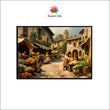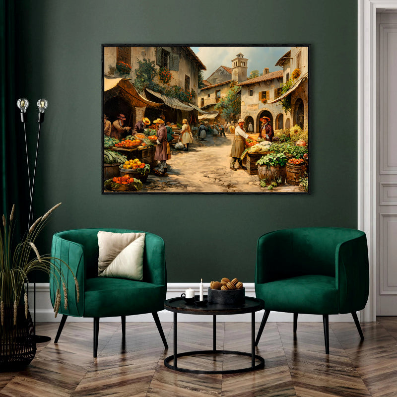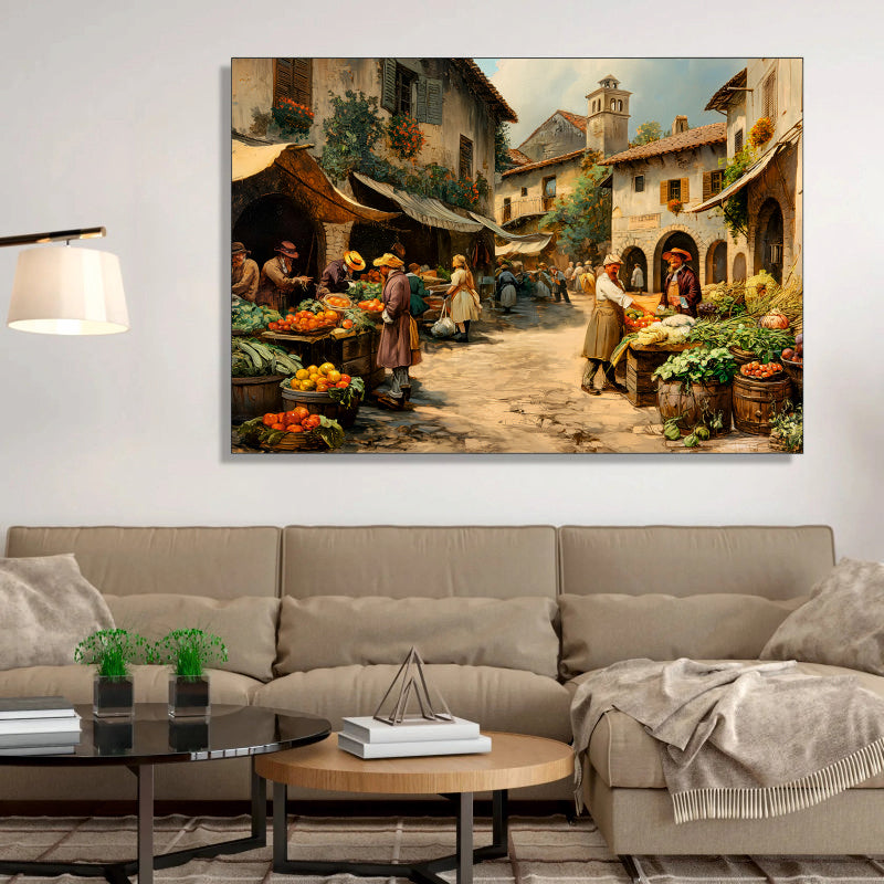Oil Painted European Town Square Market Canvas Digital Painting