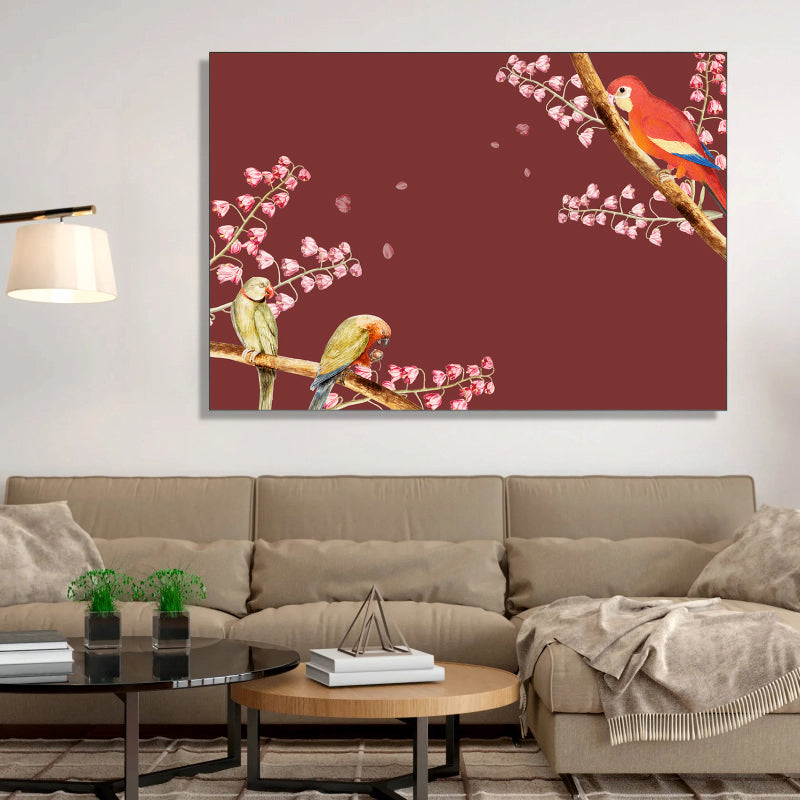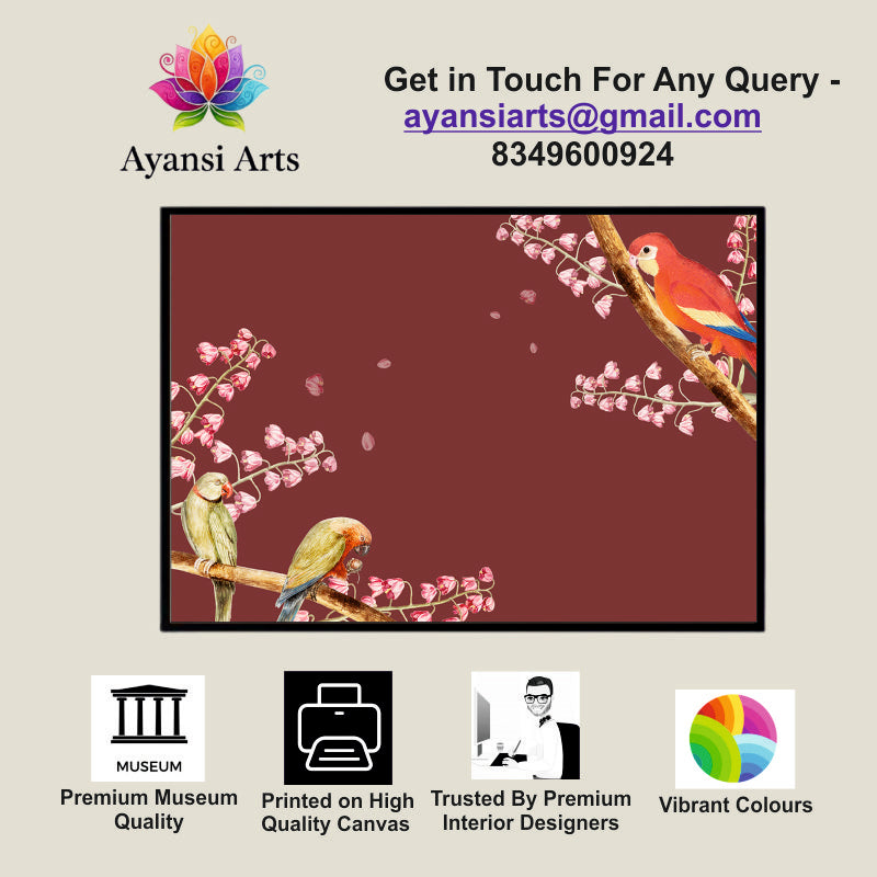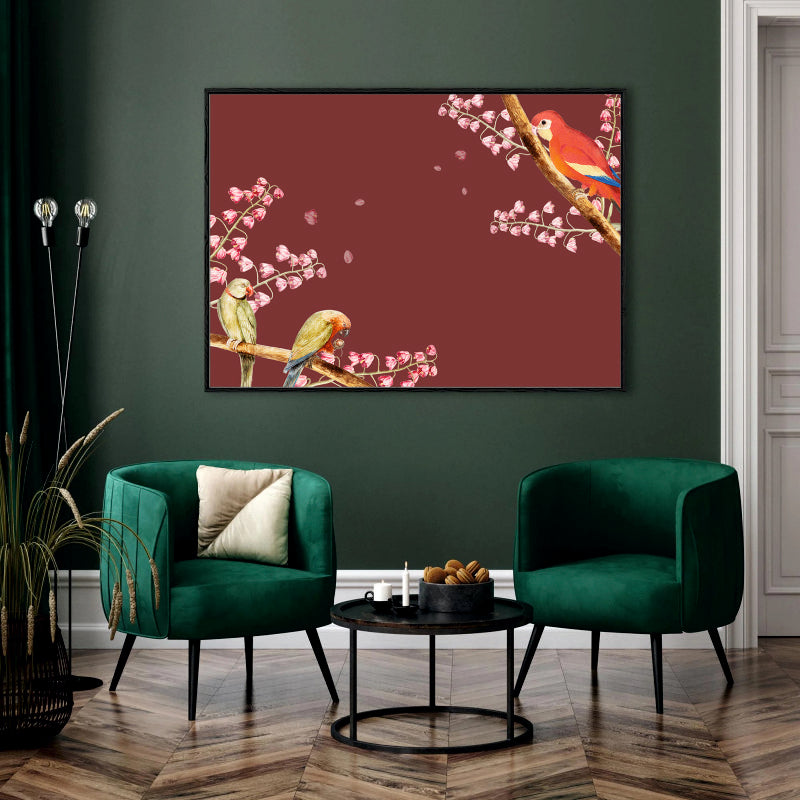 Blossom Ballad Canvas Digital Painting - Parrots in Spring Bloom