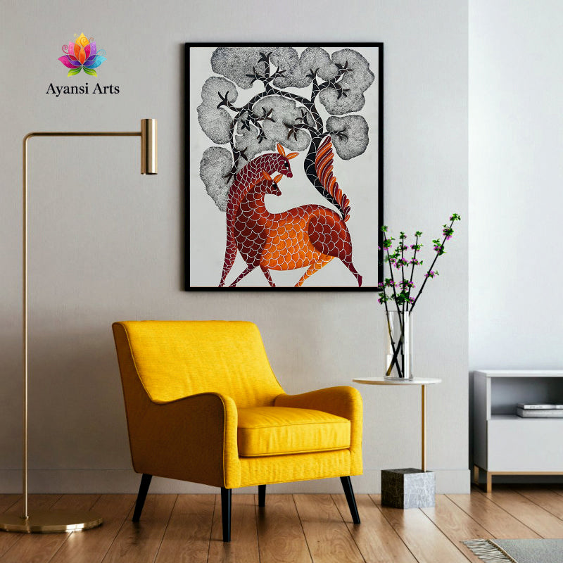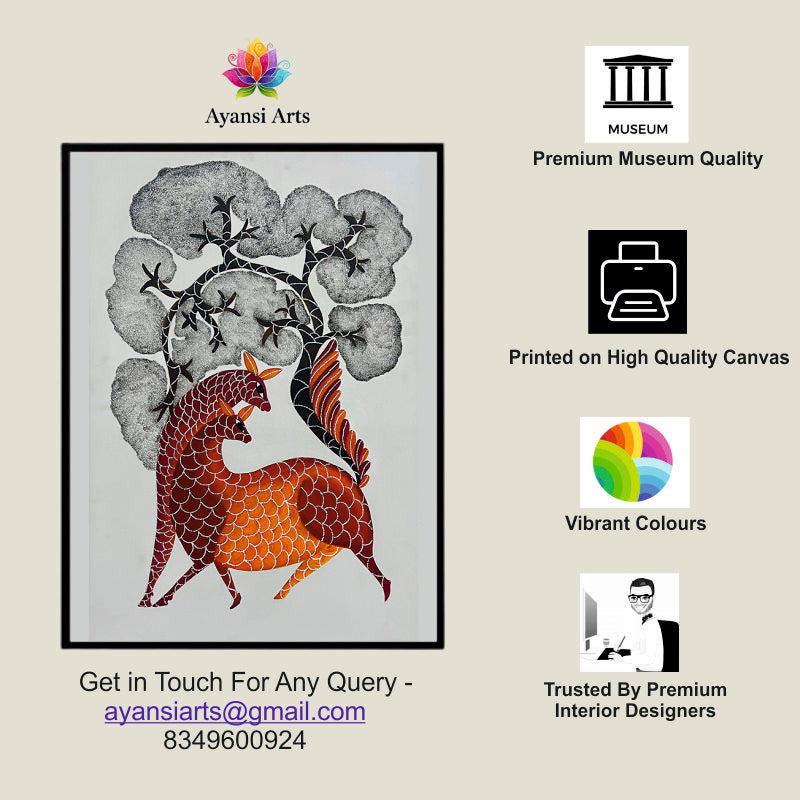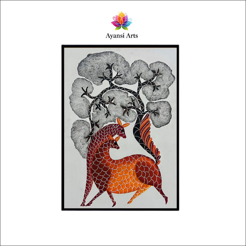 Dancing Deer Under the Cloud Trees Digital Canvas Art by Ayansi Arts