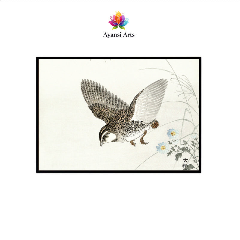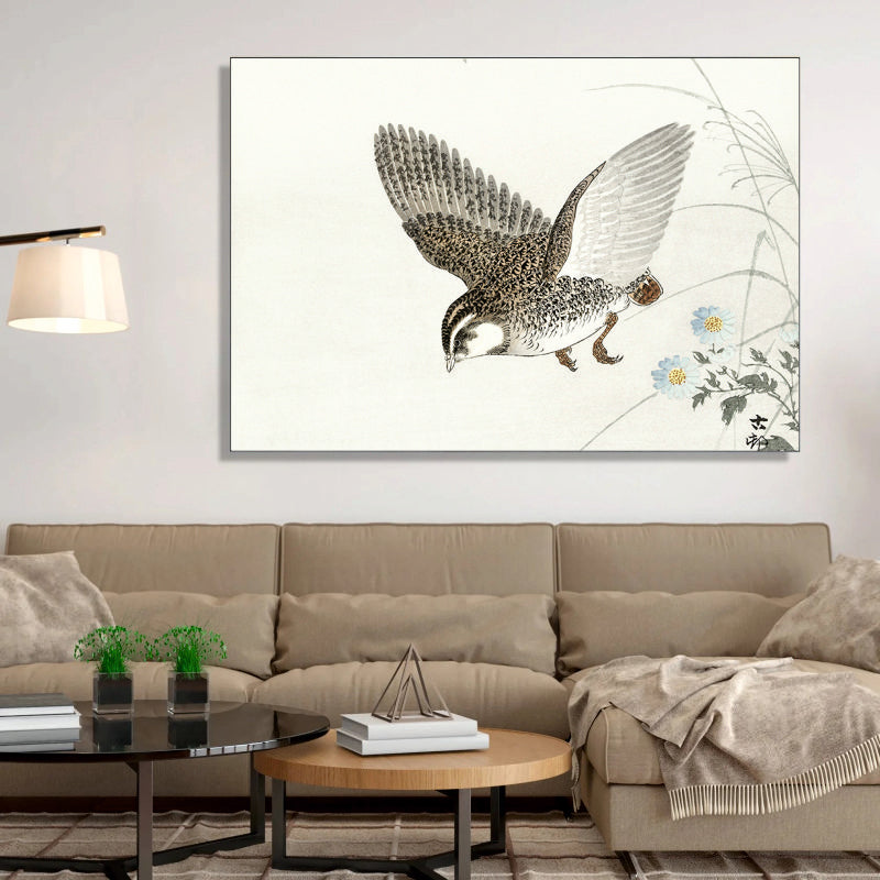 Descending Quail Canvas Digital Painting - Japanese Woodblock Style