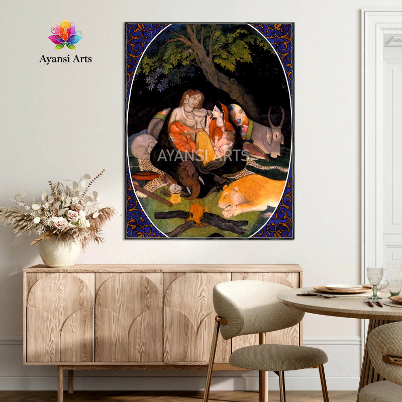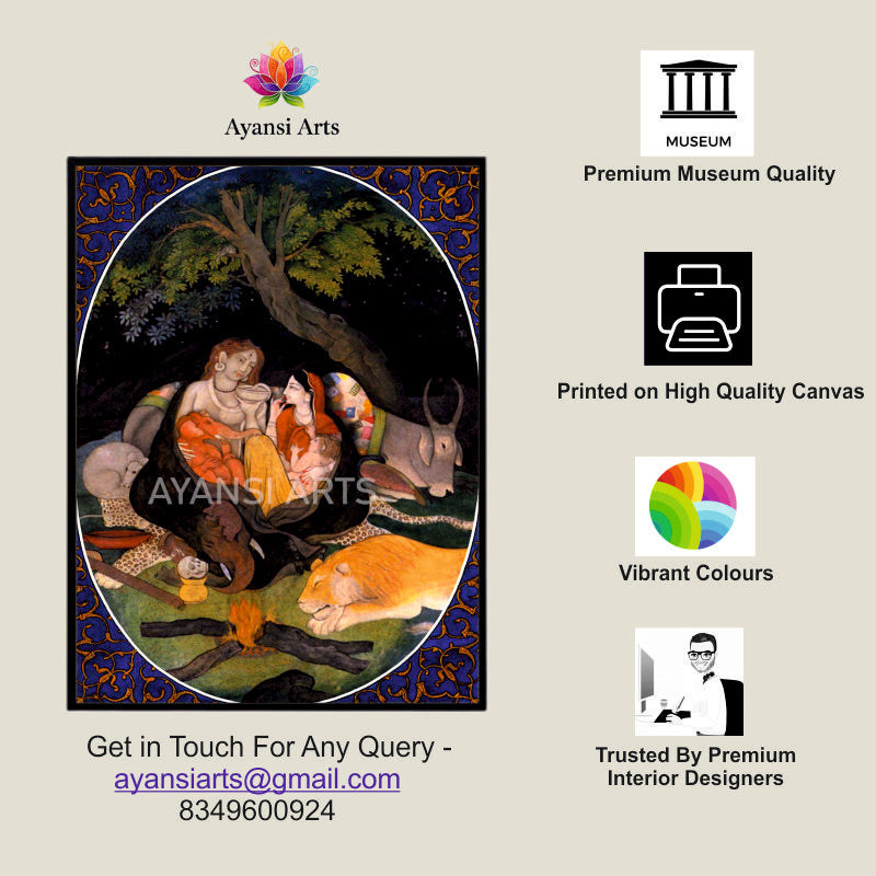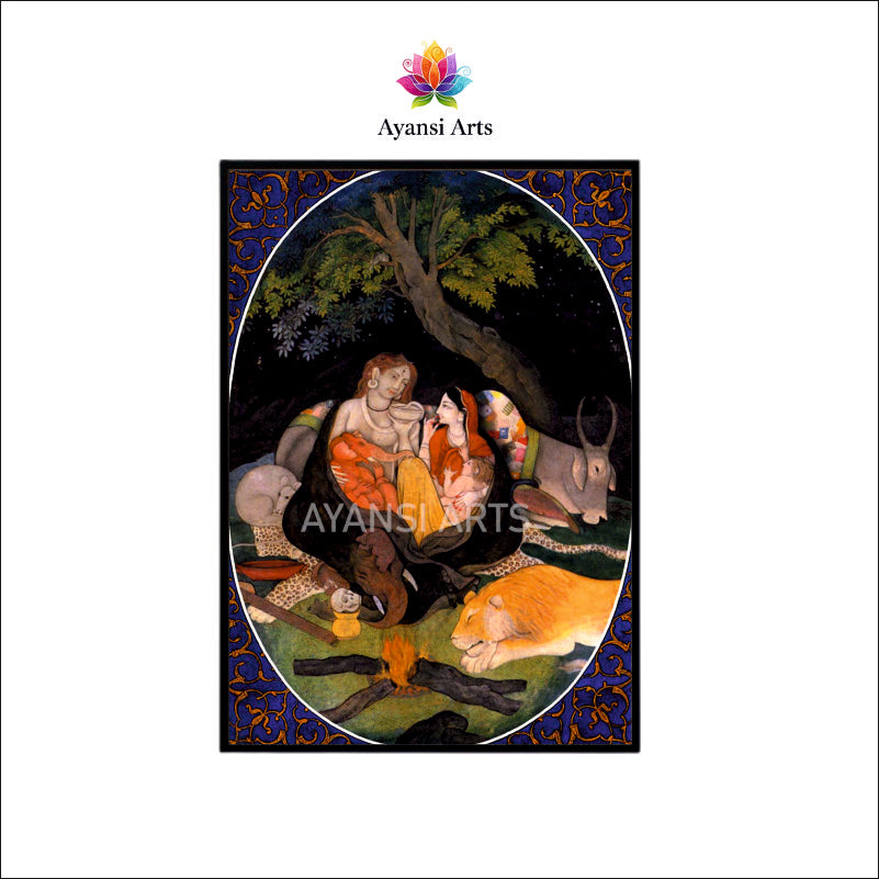 Divine Family: Lord Shiva and Parvati with Their Sons Canvas Painting by Ayansi Arts