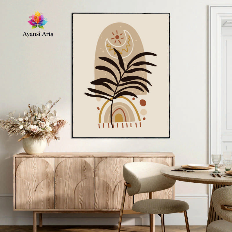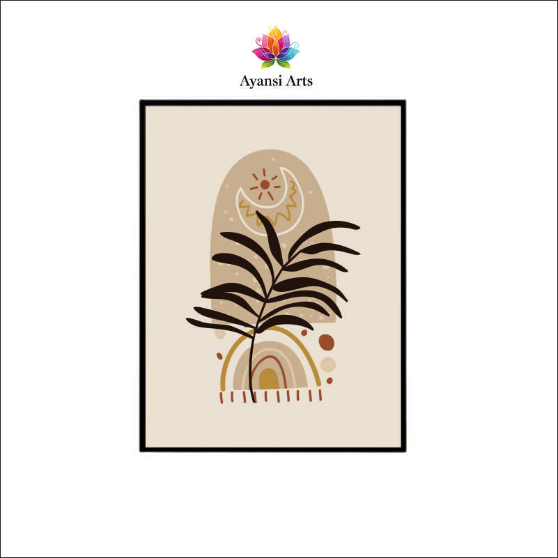 Desert Dream - Boho Sun, Moon & Palm Leaf Abstract Canvas Digital Painting by Ayansi Arts (Copy)