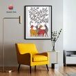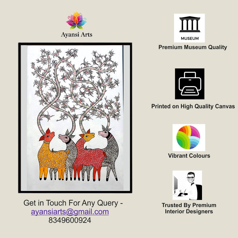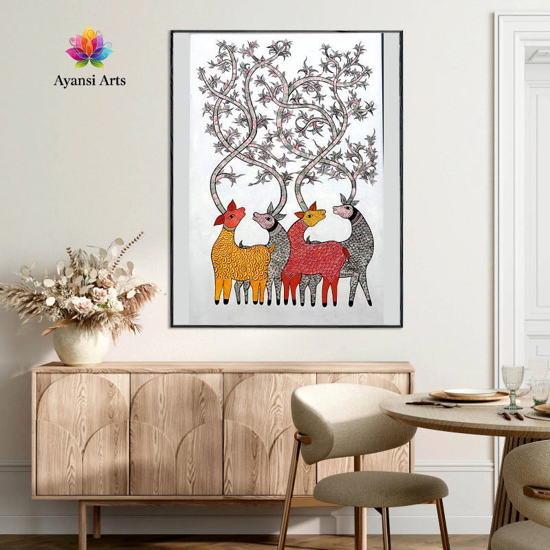 Entwined Deer with Flowing Antler Trees Tribal Canvas Digital Art Painting by Ayansi Arts