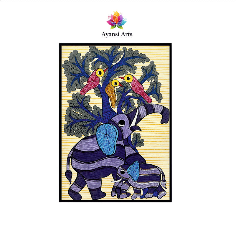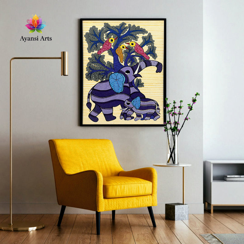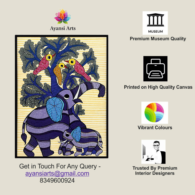 Family Harmony Purple Elephants & Pink Birds Digital Canvas Art by Ayansi Arts