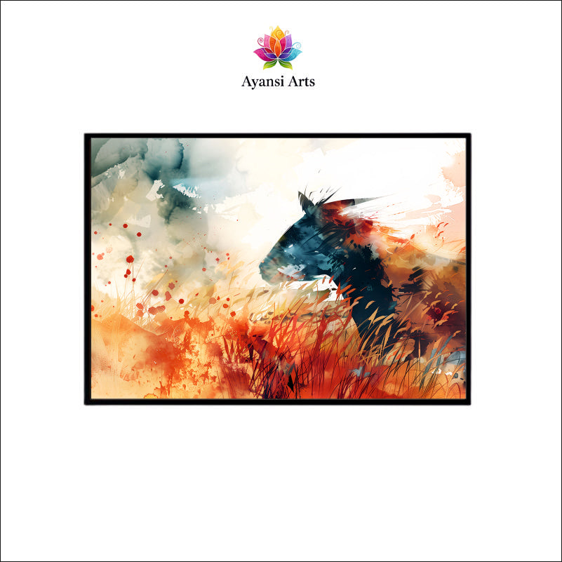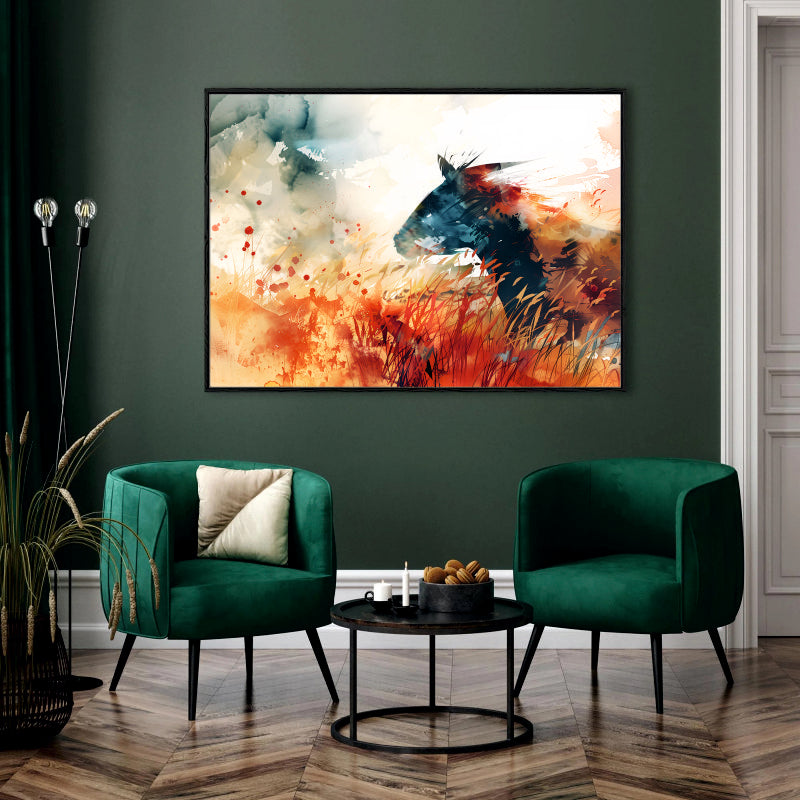 Ember Spirit Canvas Digital Painting - Abstract Horse in Wildfire Hues