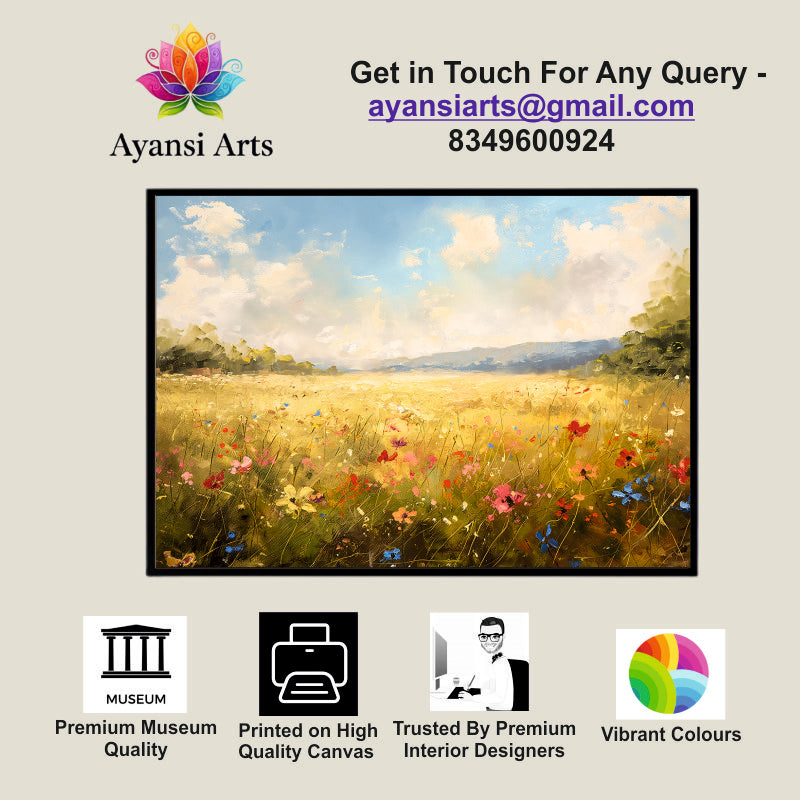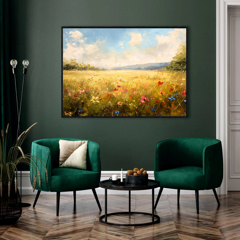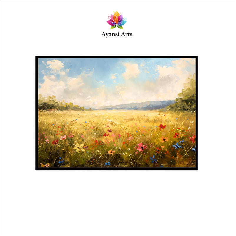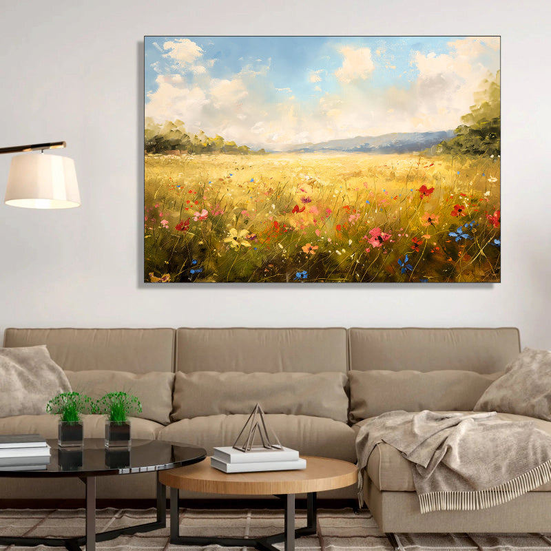 Golden Meadow with Wildflowers Canvas Digital Painting