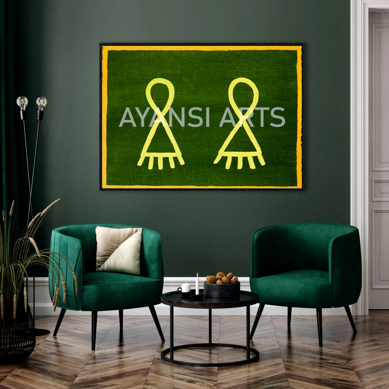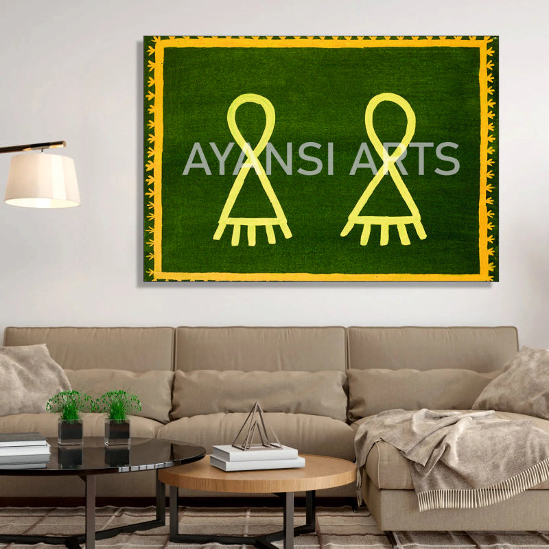 Gond Art Symbolic Figures Canvas Painting by Ayansi Arts