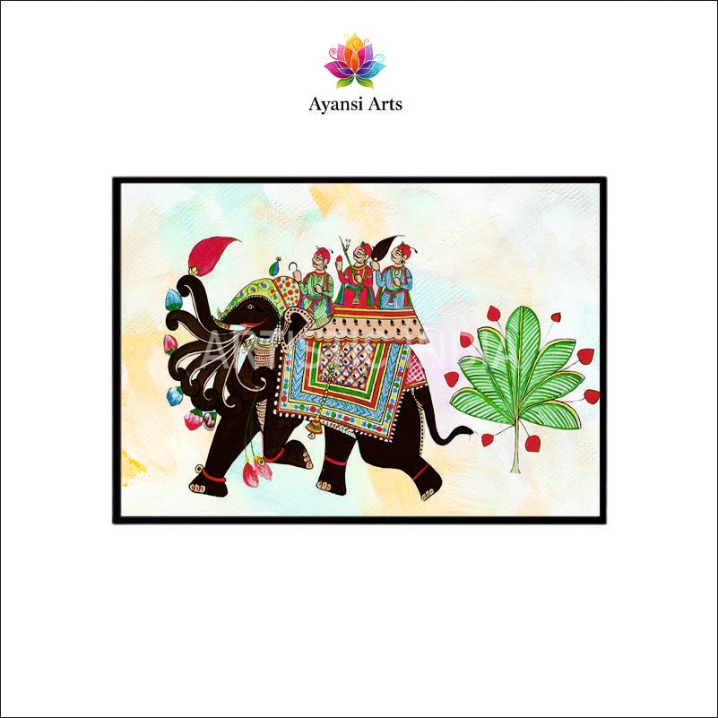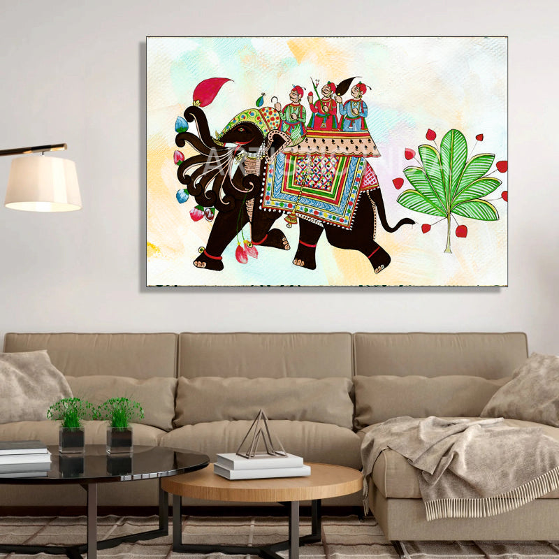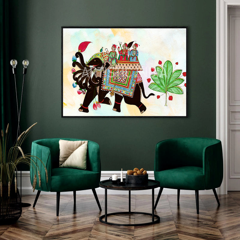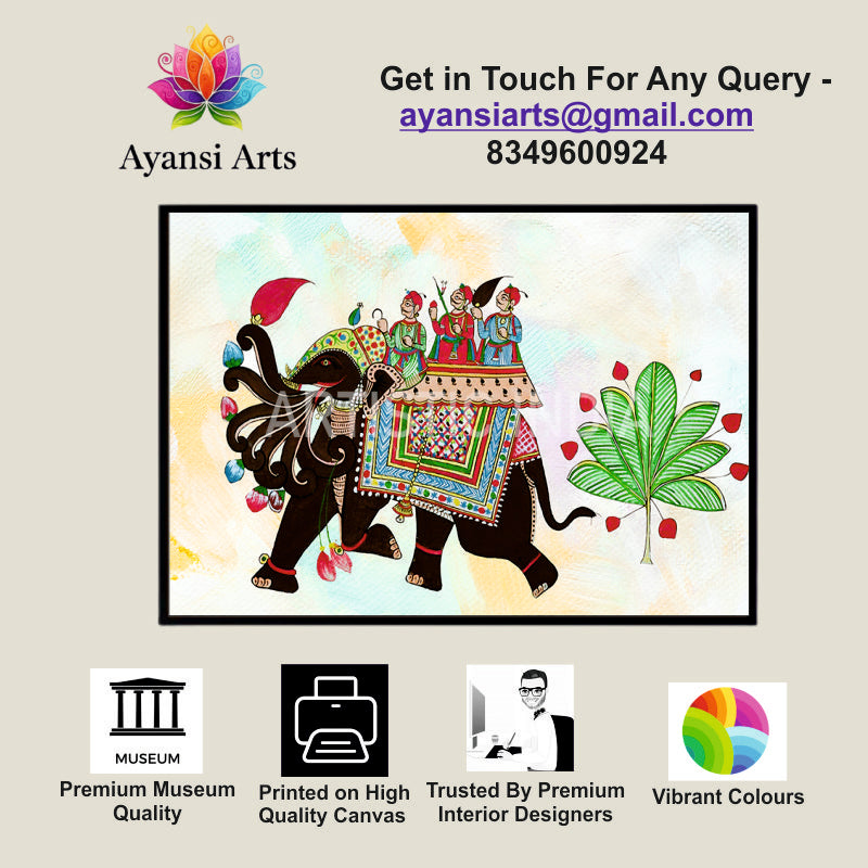 Pichwai Style Royal Elephant Procession Canvas Painting by Ayansi Arts