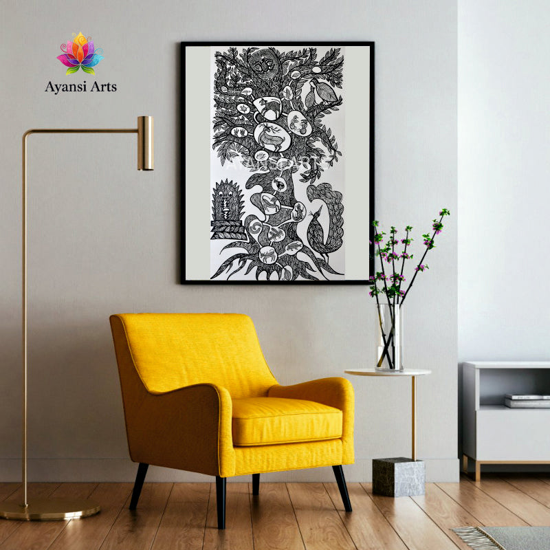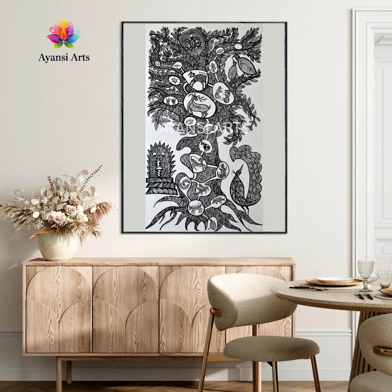 Gond Art Tree of Life with Creatures Canvas Painting by Ayansi Arts