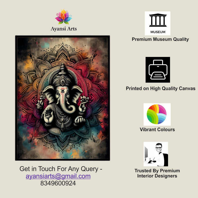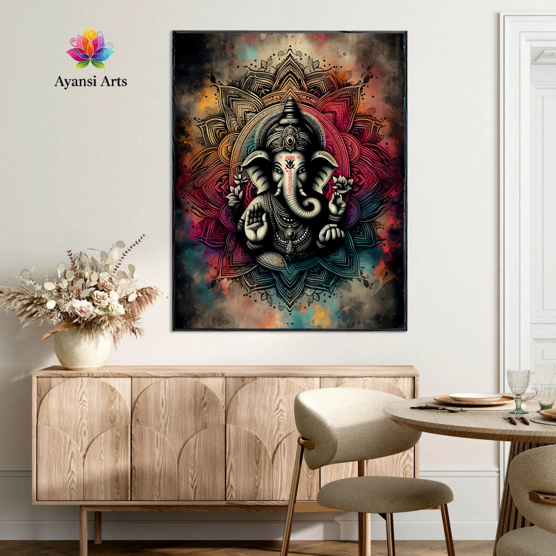 Divine Ganesha Mandala Canvas Art - Vibrant Spiritual Decor by Ayansi Arts