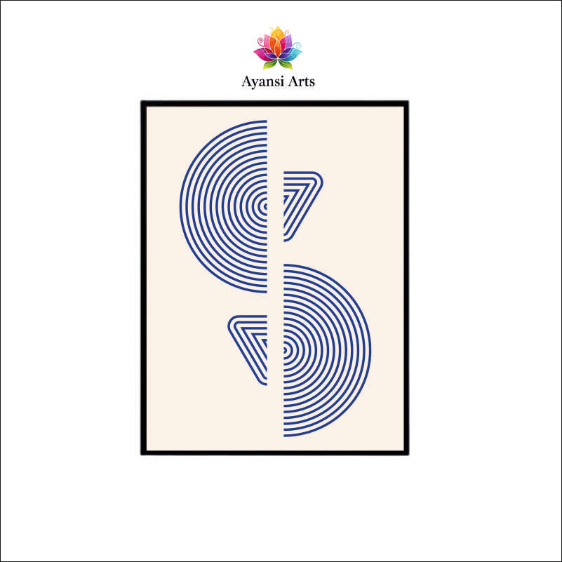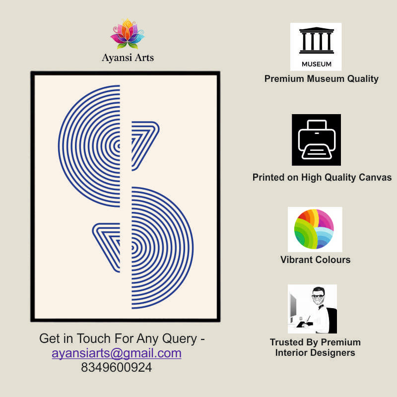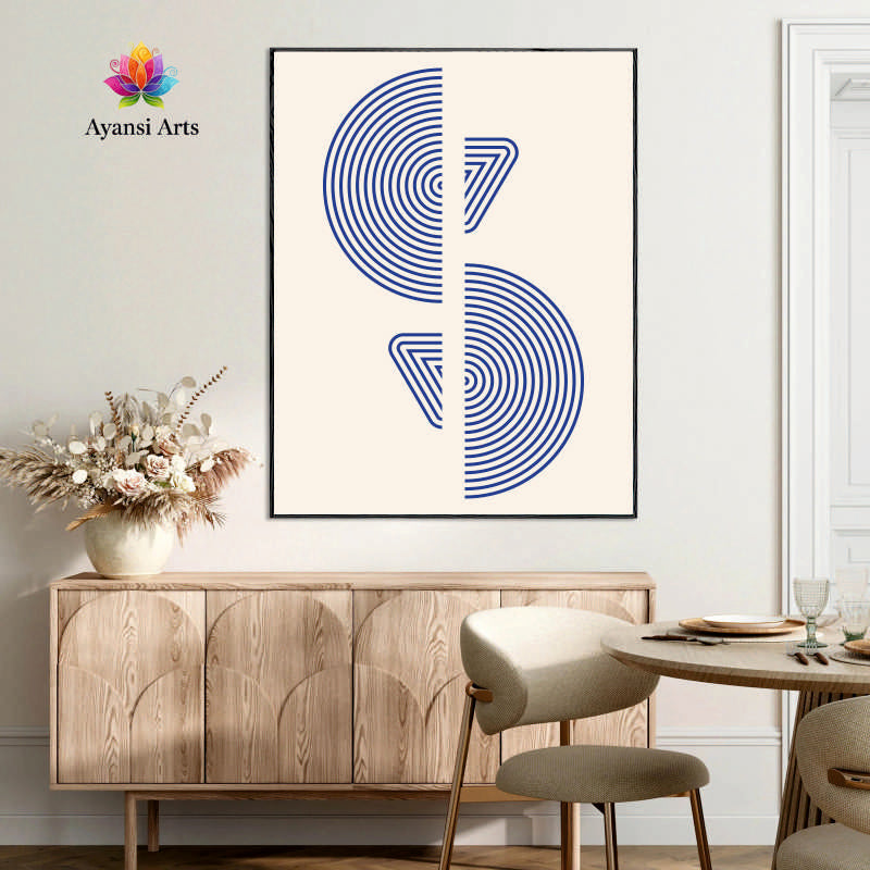 Indigo Echoes - Modern Geometric Abstract Canvas Digital Painting by Ayansi Arts