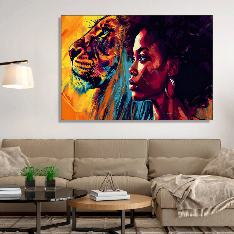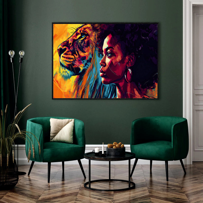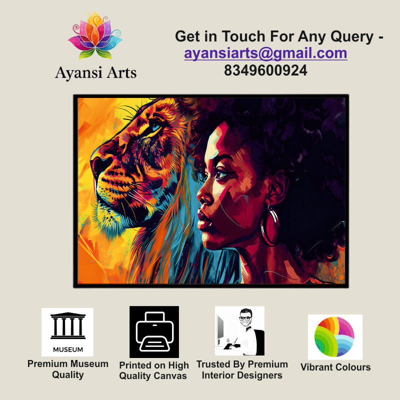 Inner Strength Aesthetic Canvas Digital Painting - Woman and Lion