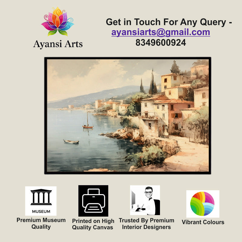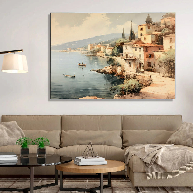 Italian Riviera Coastal Village Canvas Digital Painting