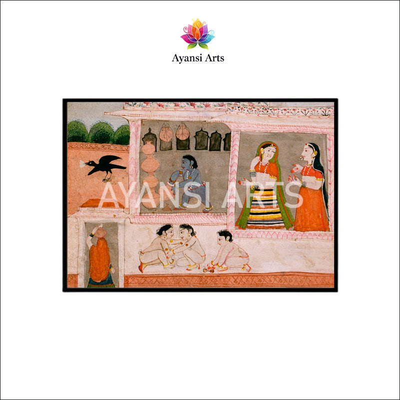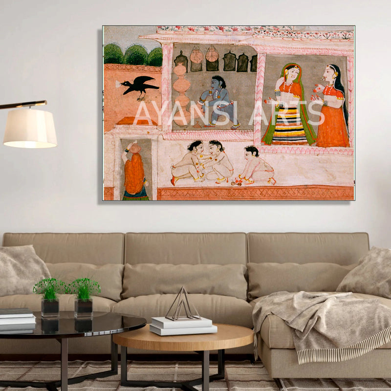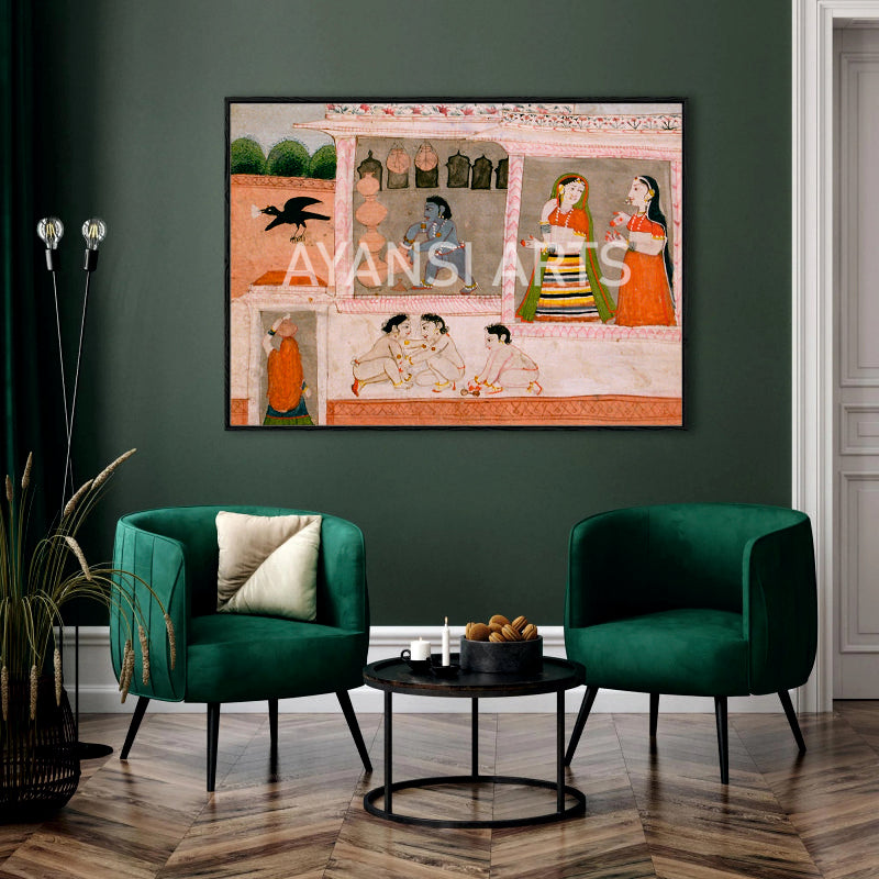 Krishna Bal Leela Traditional Art Canvas Painting by Ayansi Arts