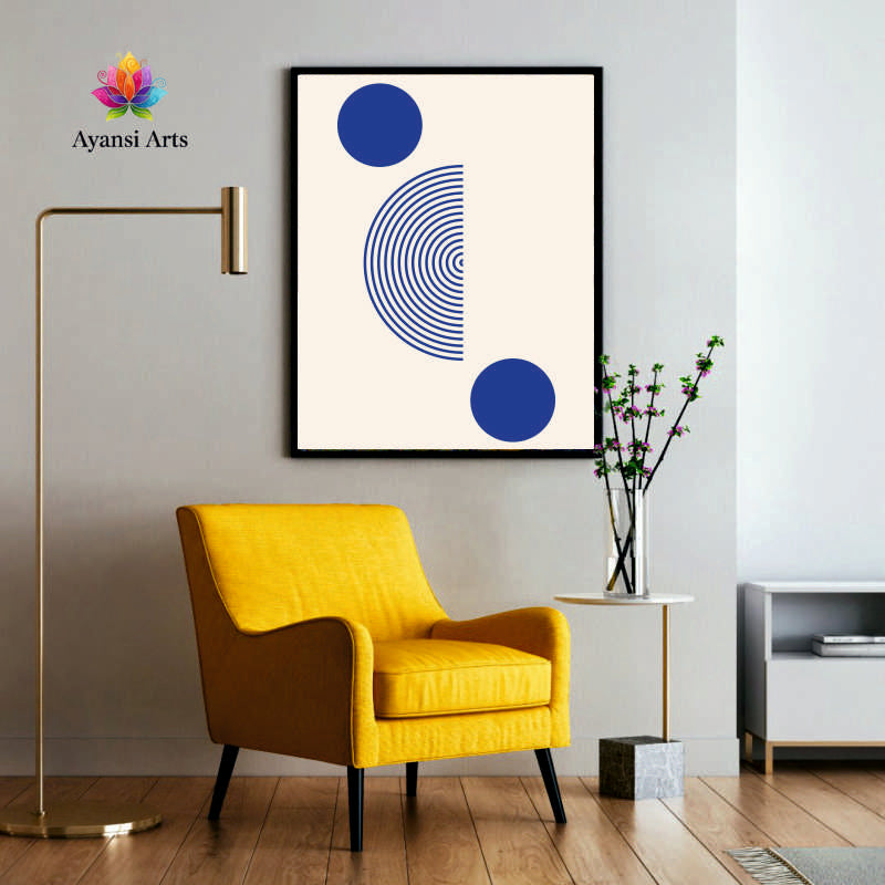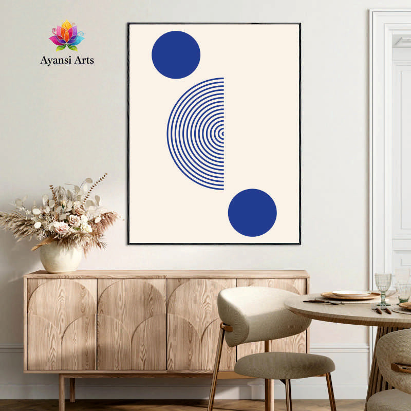 Lunar Echo" - Abstract Blue Geometric Canvas Digital Painting by Ayansi Art