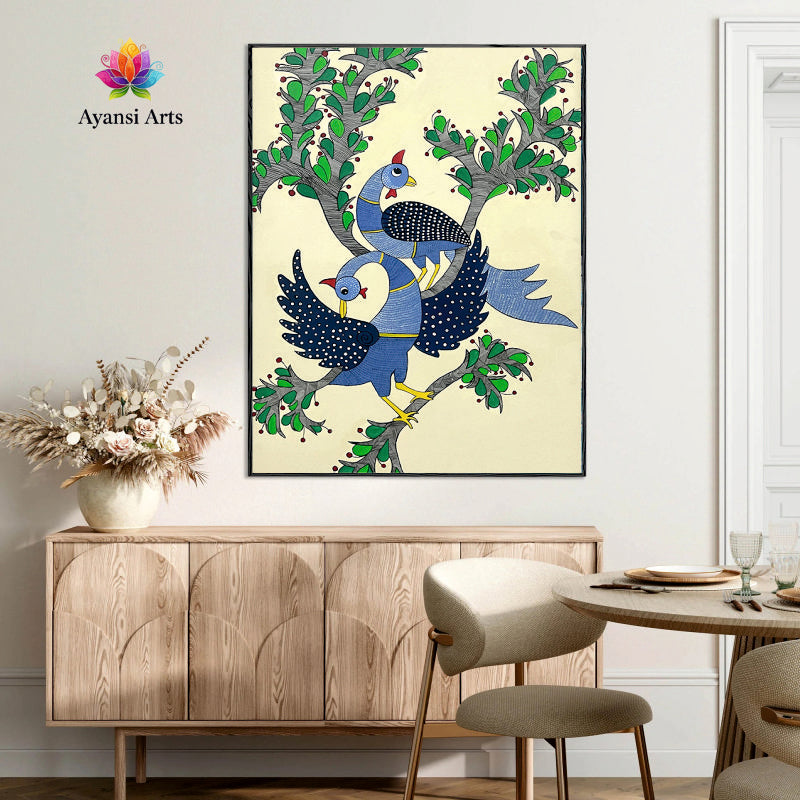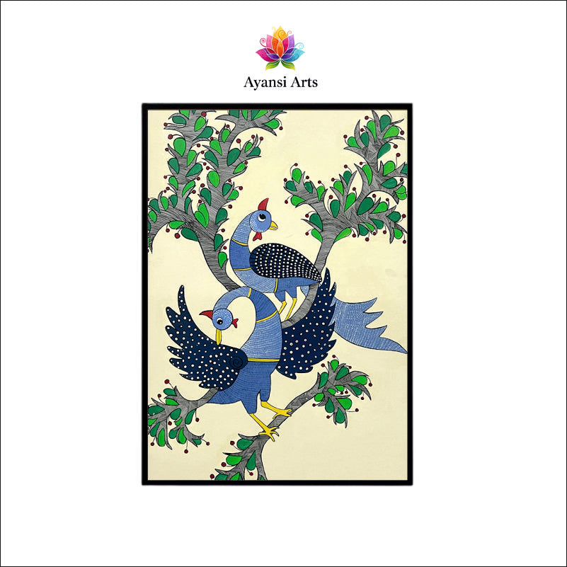 Madhubani Birds on Tree Digital Canvas Art by Ayansi Arts