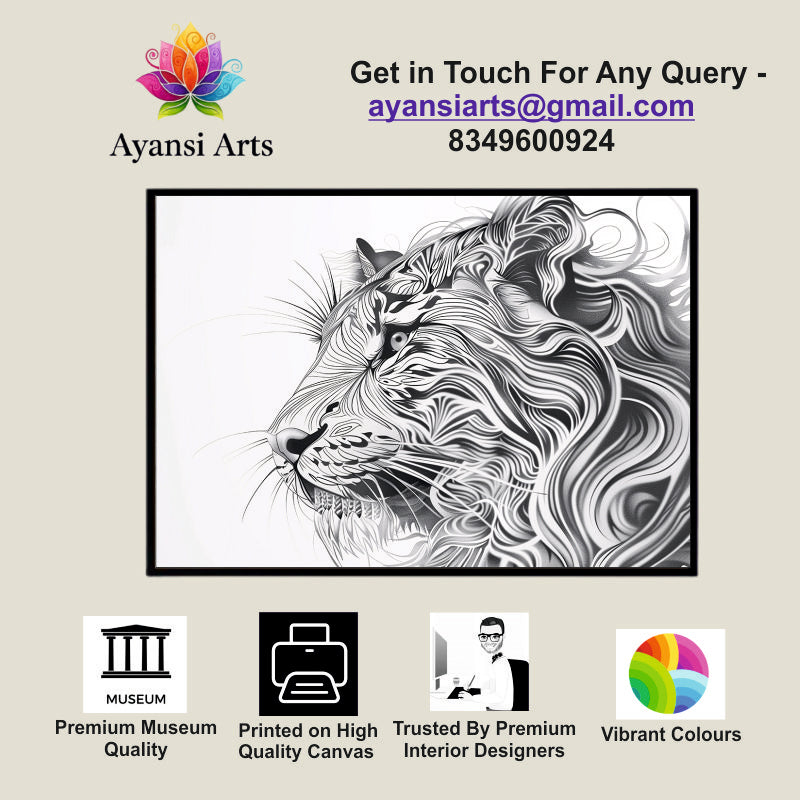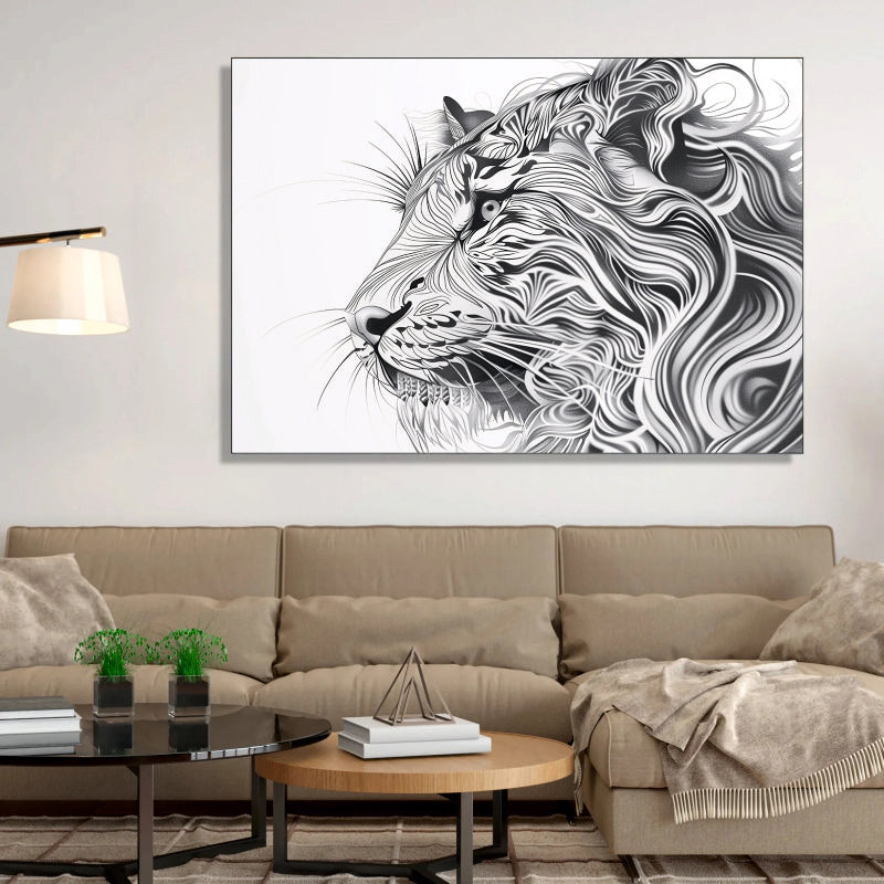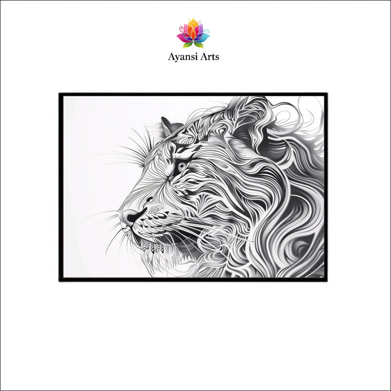 Majestic Lines Canvas Digital Painting - Abstract Lion Portrait