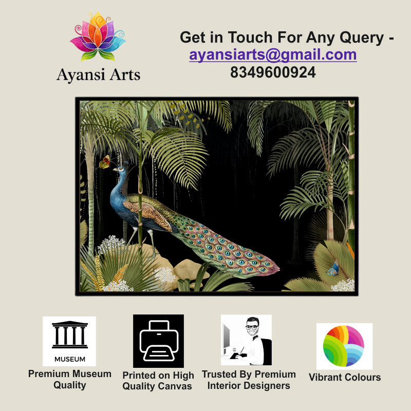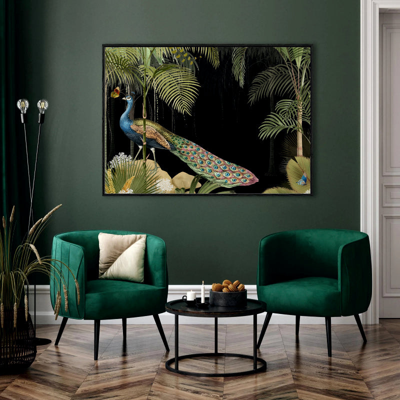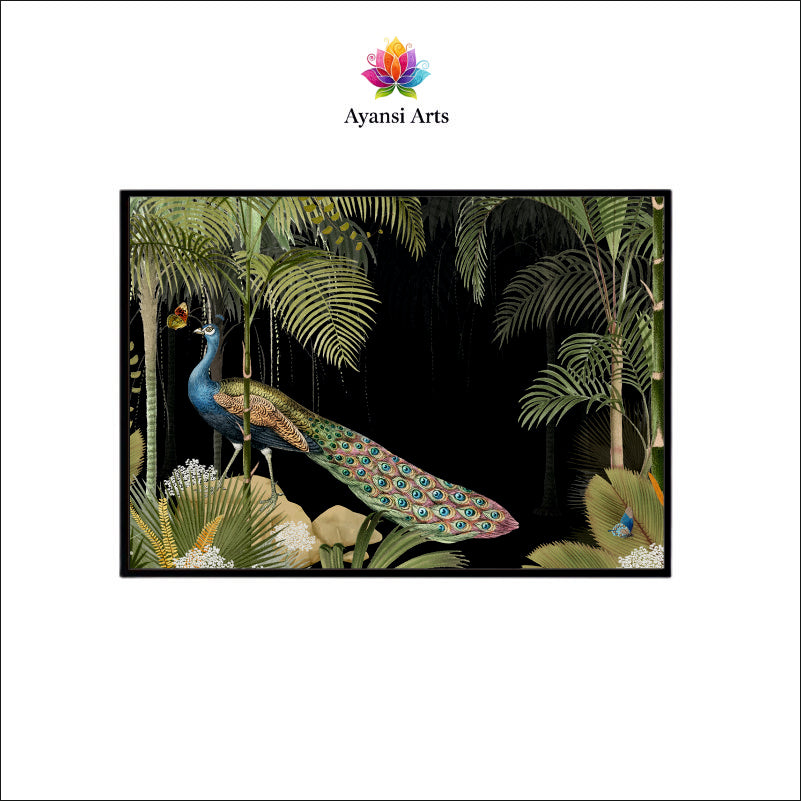 Midnight Peacock Canvas Digital Painting - Tropical Night Scene