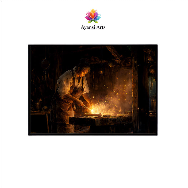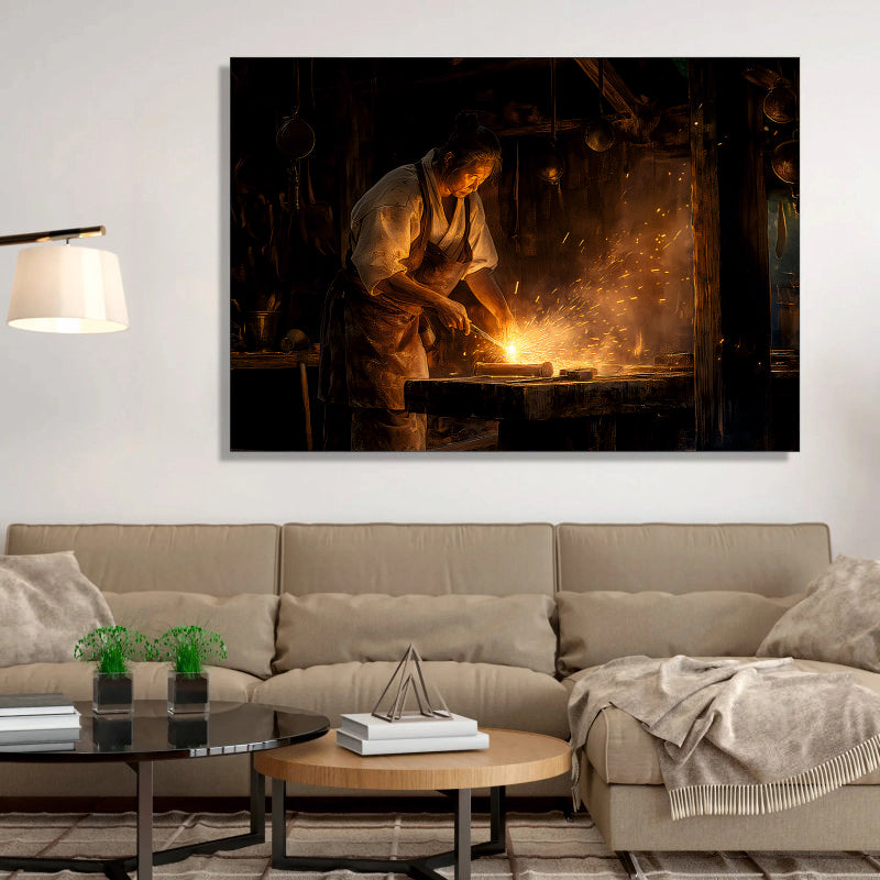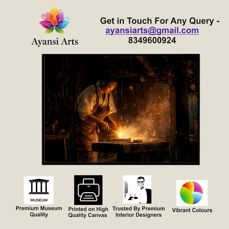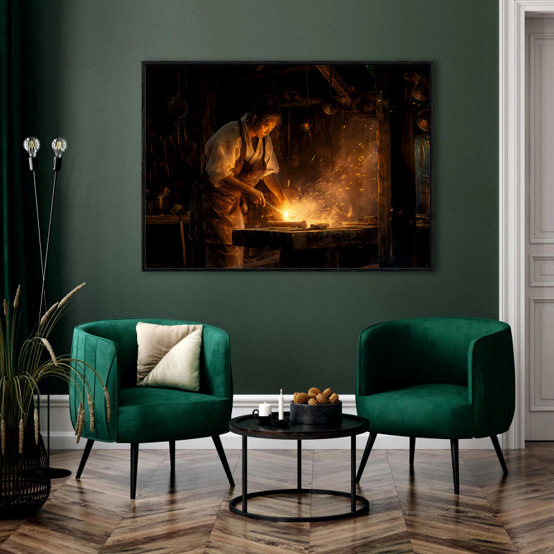 Oil Painted Blacksmith at Forge Canvas Digital Painting