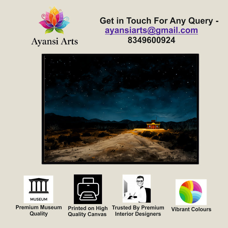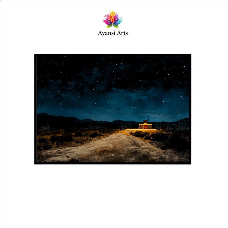 Oil Painted Desert Night with Starry Sky Canvas Digital Painting