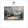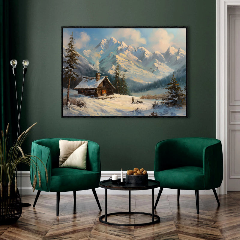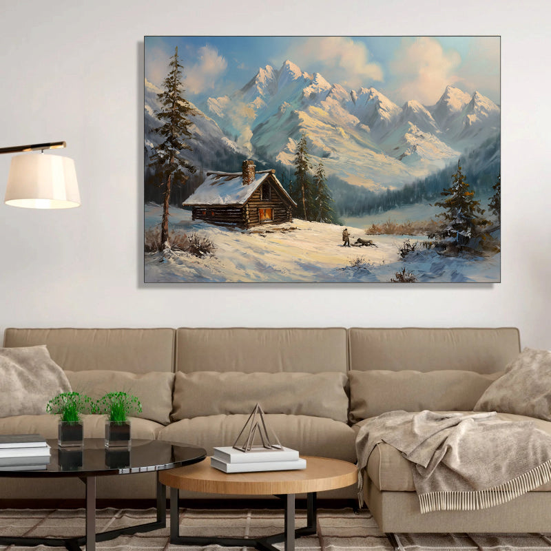 Oil Painted Winter Cabin in the Mountains Canvas Digital Painting