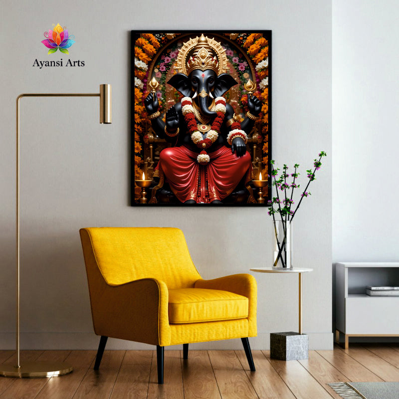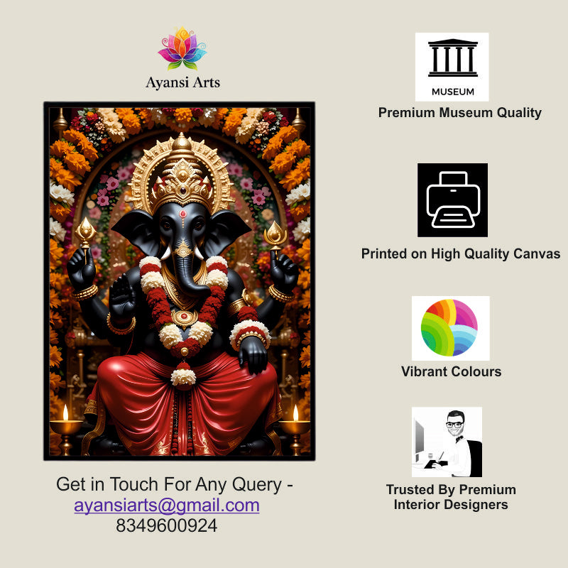 Regal Black Ganesha - Floral Adornment Canvas Art by Ayansi Arts