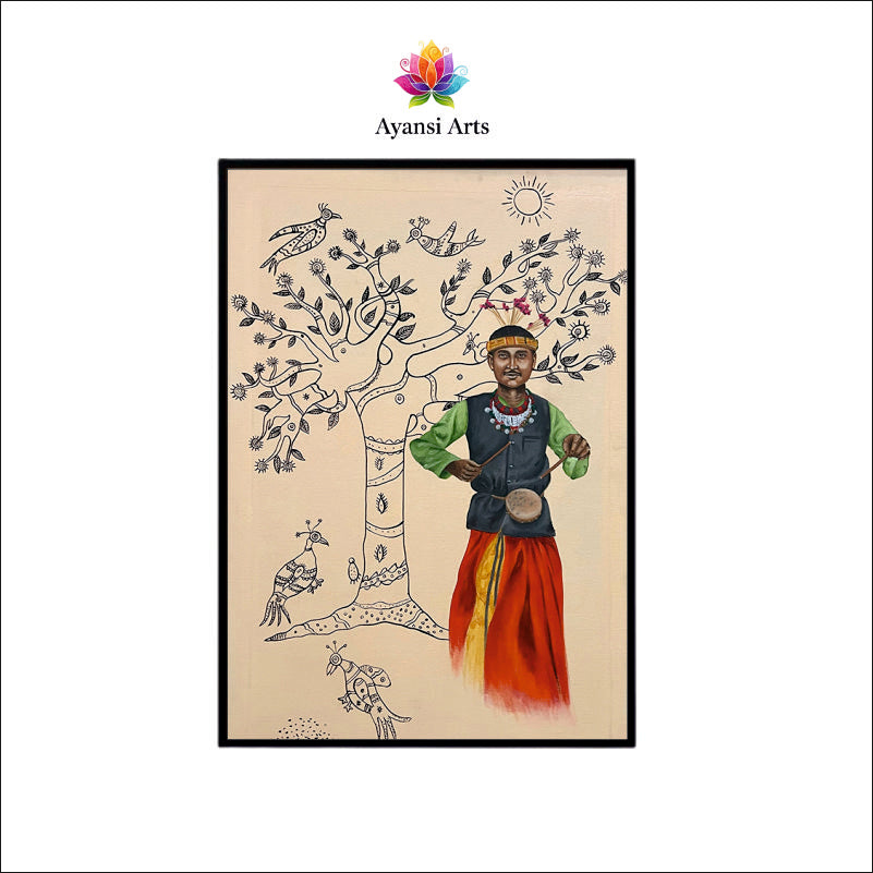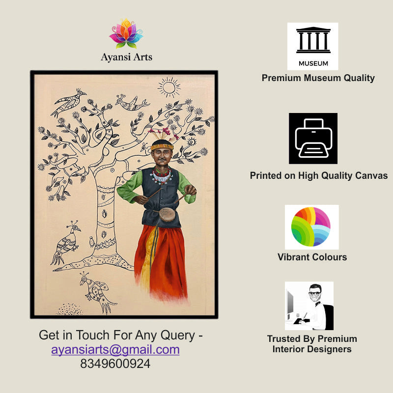 Rhythm of the Forest: Tribal Musician & Tree of Life Canvas Digital Painting Canvas Art by Ayansi Arts