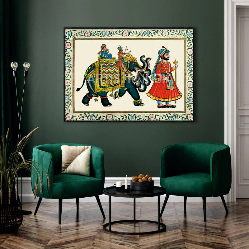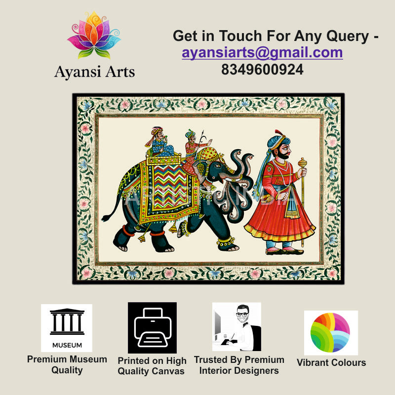 Royal Elephant Procession of Rajasthan Canvas Painting by Ayansi Arts