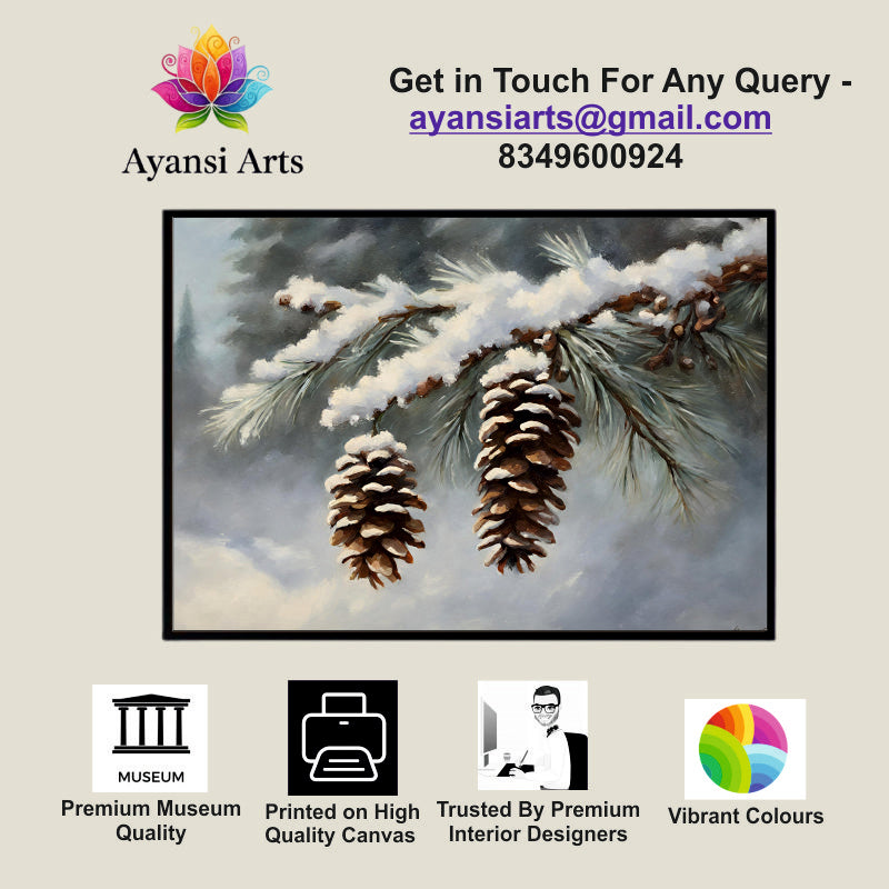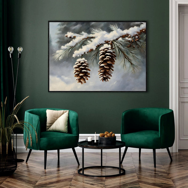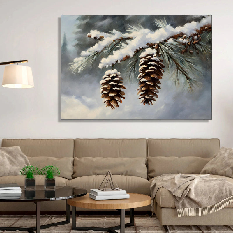 Winter's Touch: Snow-Kissed Pine Cones Canvas Painting