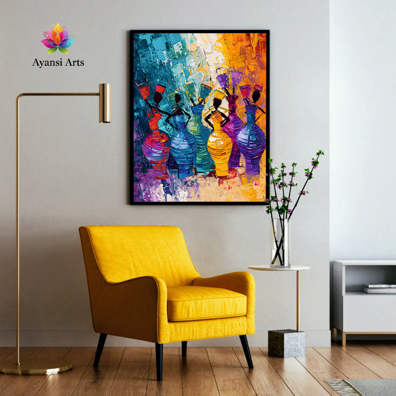 Market Day Vibrance - Abstract African Figurative Art by Ayansi Arts