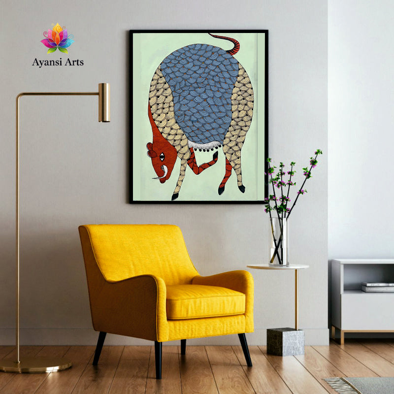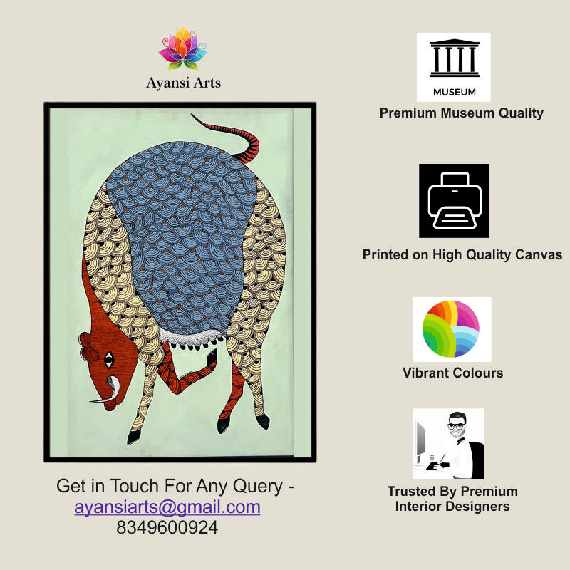 Stylized Tribal Bull Motif Canvas Digital Canvas Art by Ayansi Arts