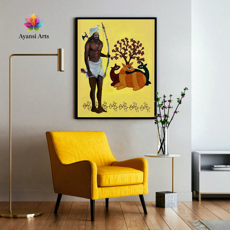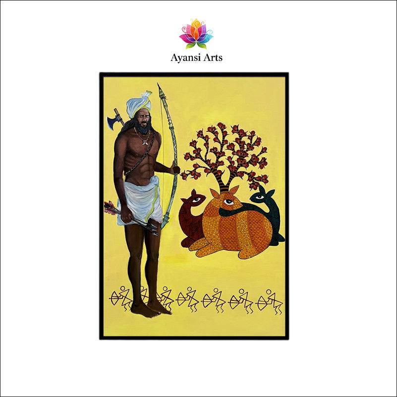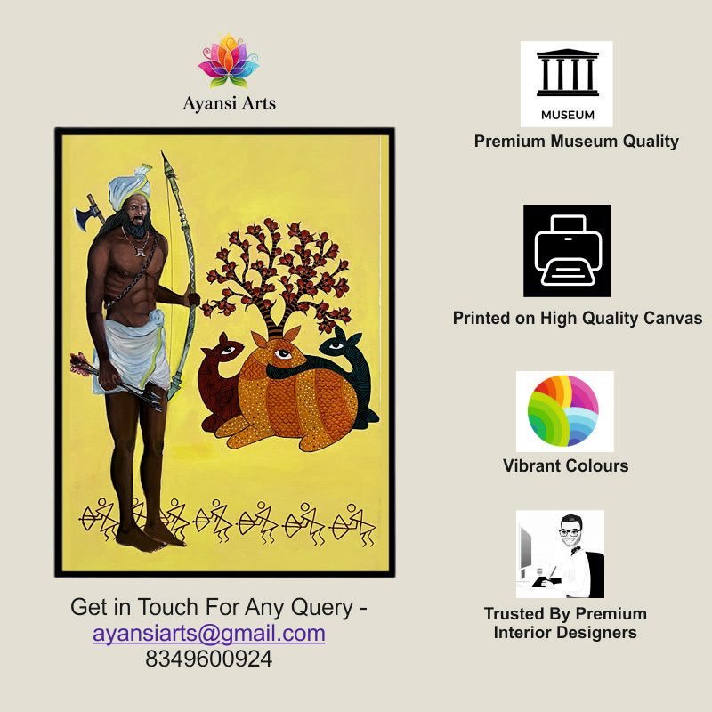 The Protector & Sacred Deer Tribal Canvas Digital Painting Canvas Art by Ayansi Arts