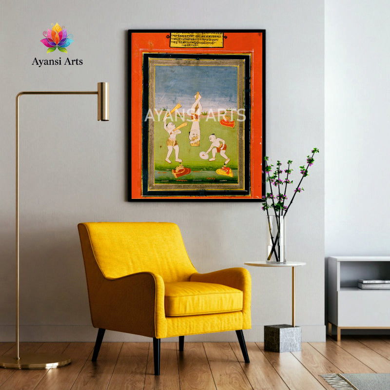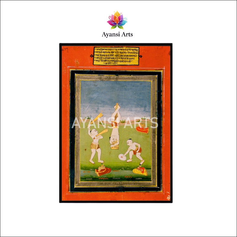 Traditional Miniature Vyayam (Exercise) Art Canvas Painting by Ayansi Arts