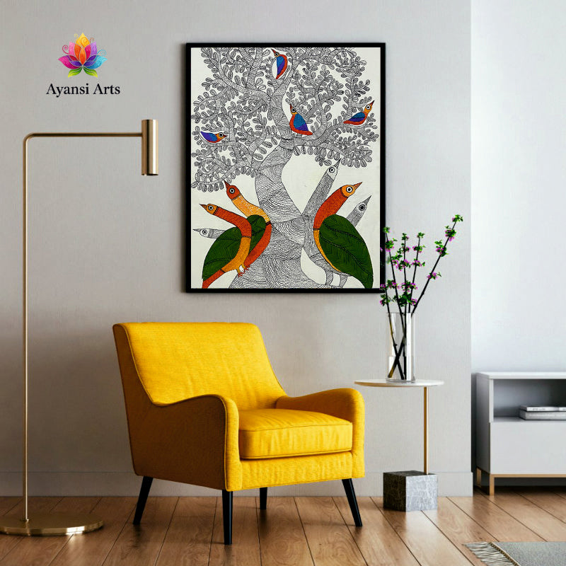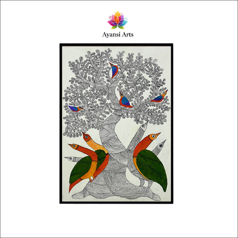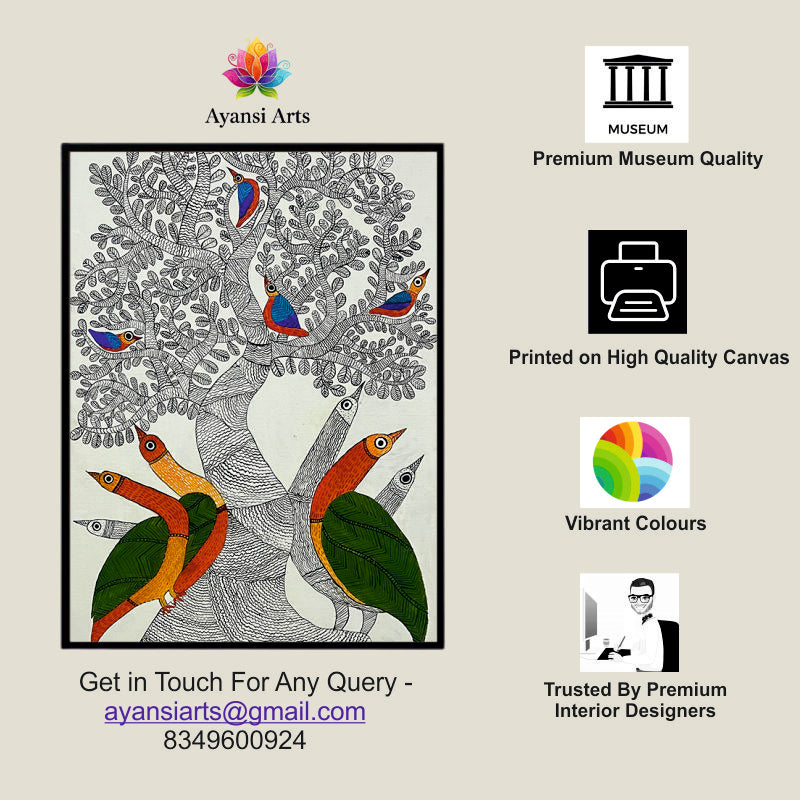 Tree of Life Series an Gathering of Birds Tribal Canvas Digital Painting Canvas Art by Ayansi Arts