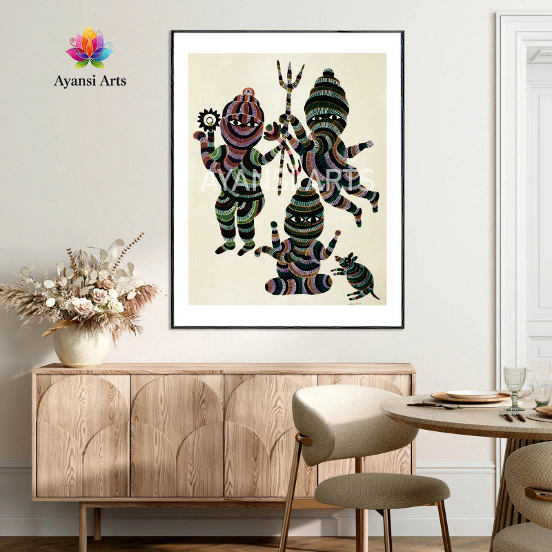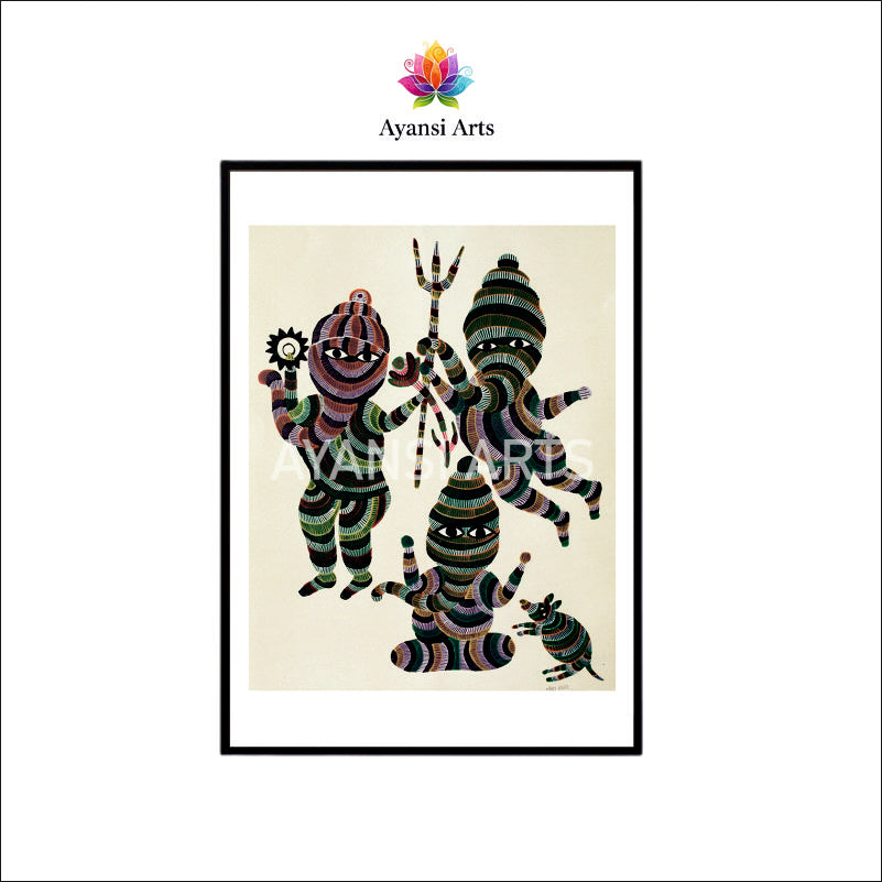 Abstract Tribal Shiv Parivar Canvas Painting by Ayansi Arts
