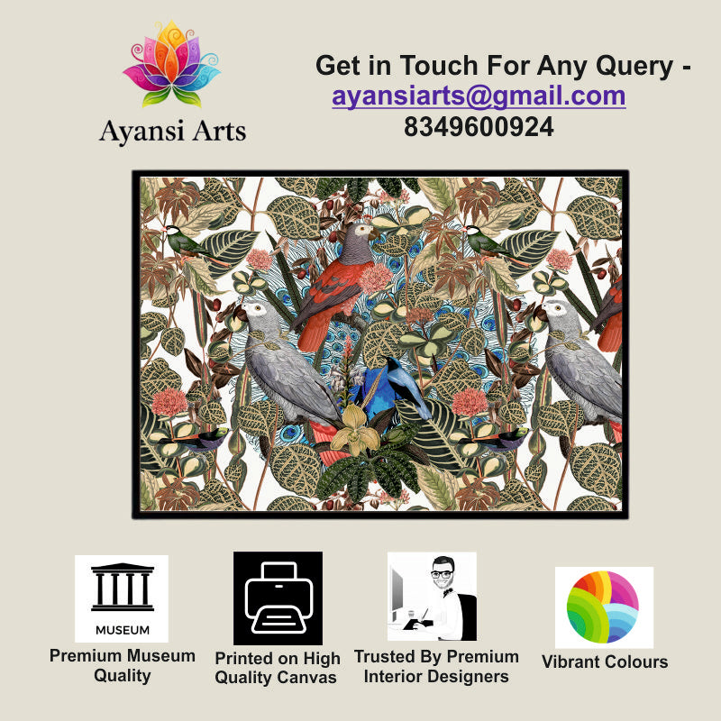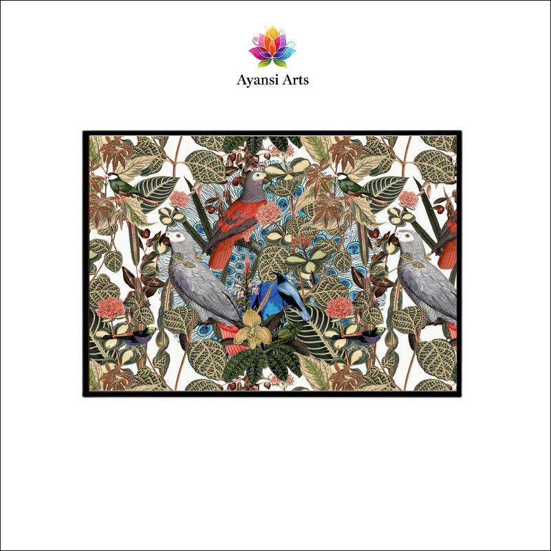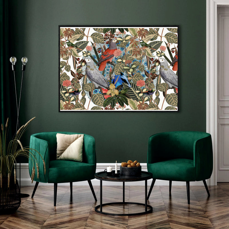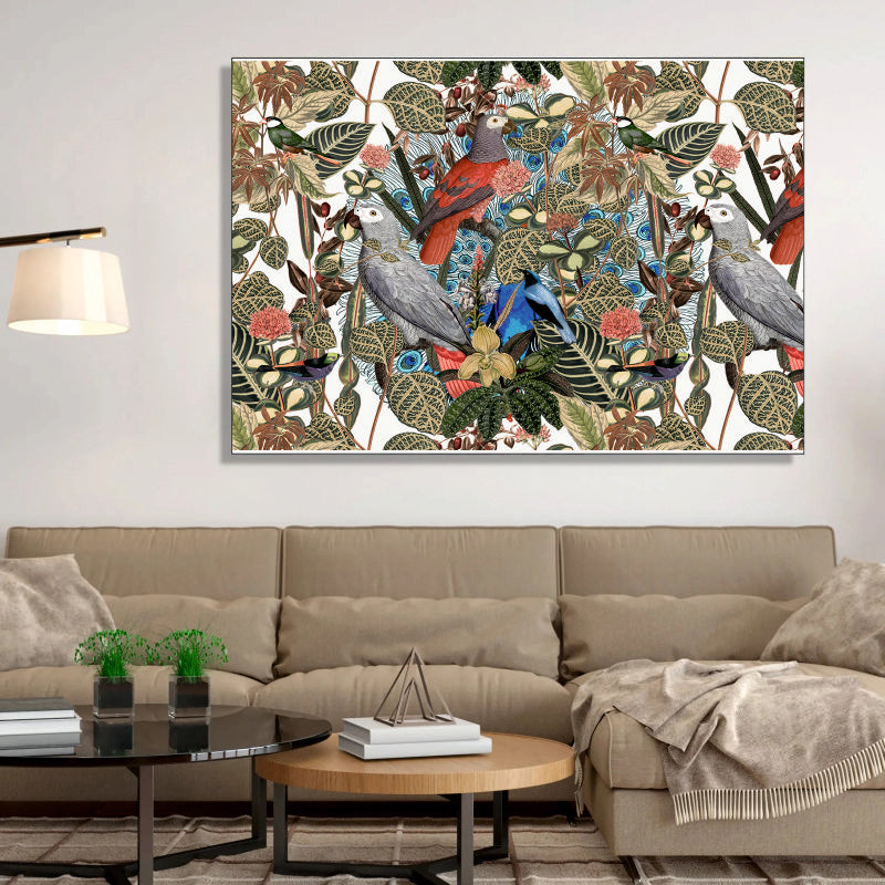 Tropical Aviary Canvas Digital Painting - Lush Bird and Foliage Scene