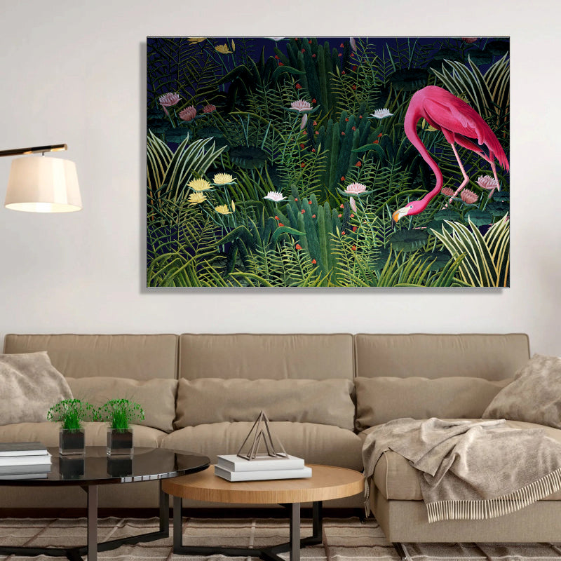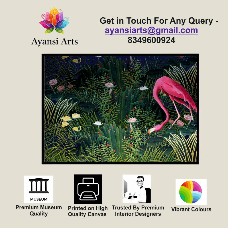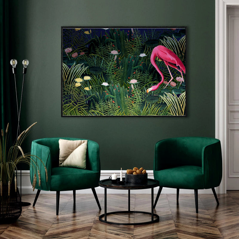 Twilight Flamingo Haven Canvas Digital Painting - Lush Nocturnal Wetlands
