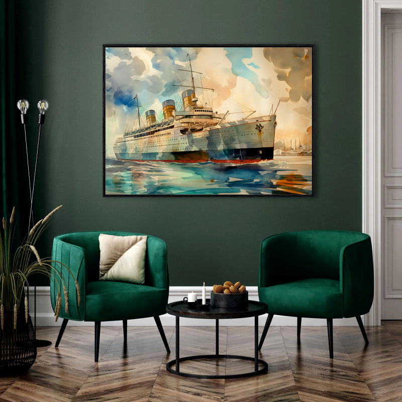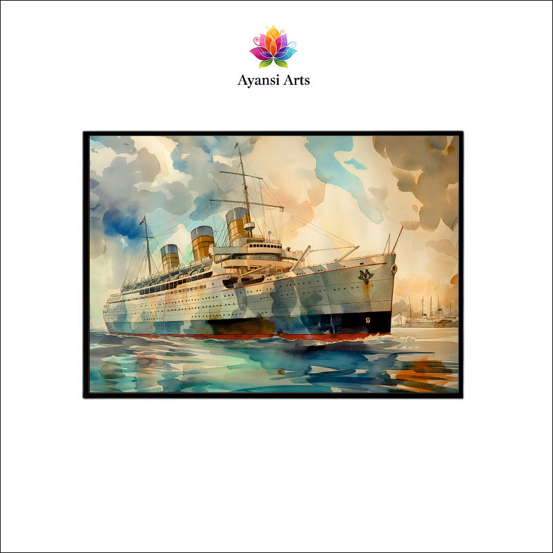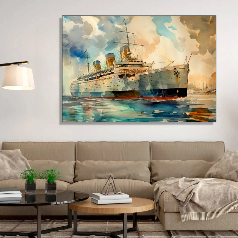 Watercolor Cruise Ship on the Open Sea Canvas Digital Painting