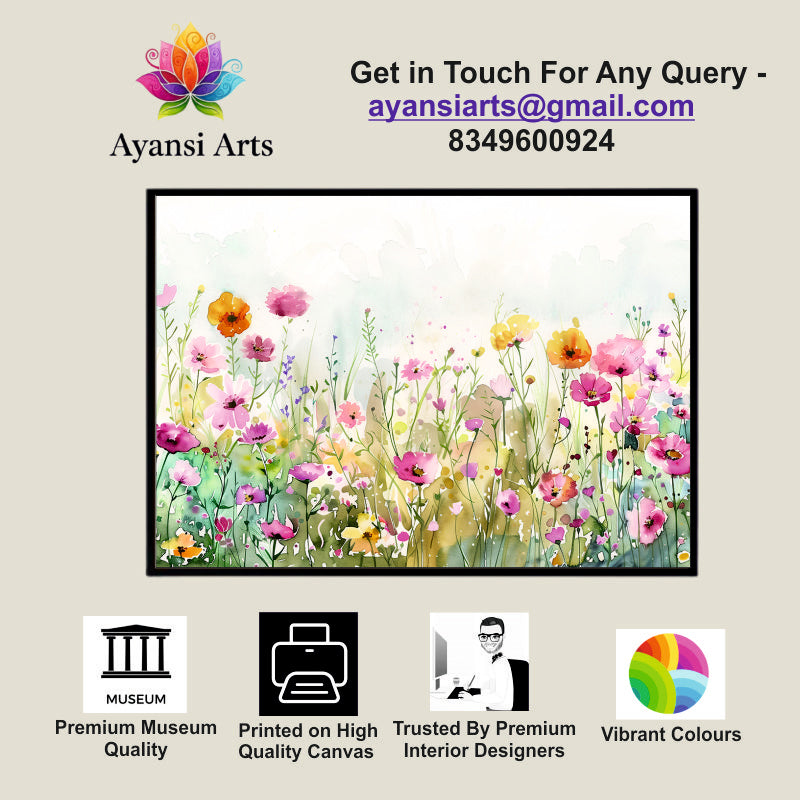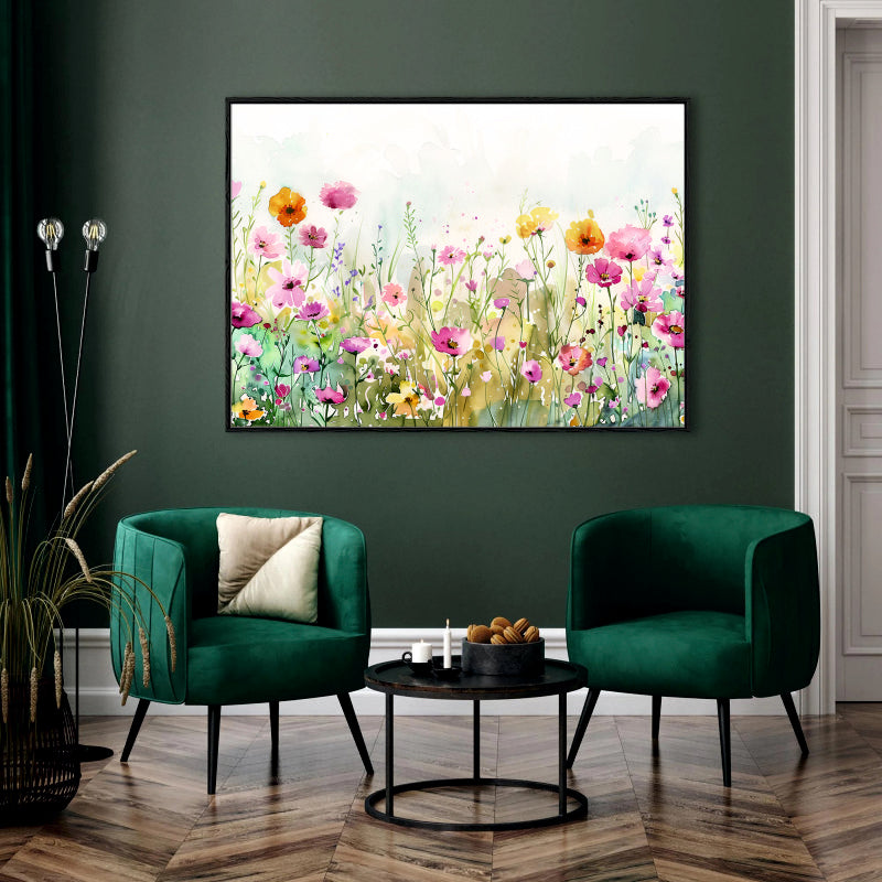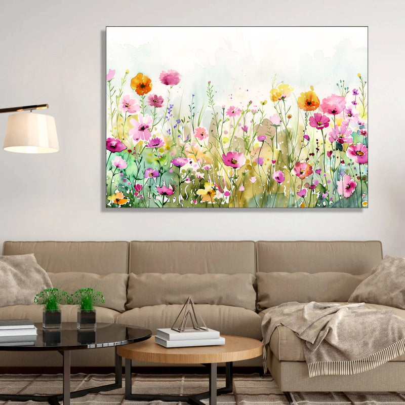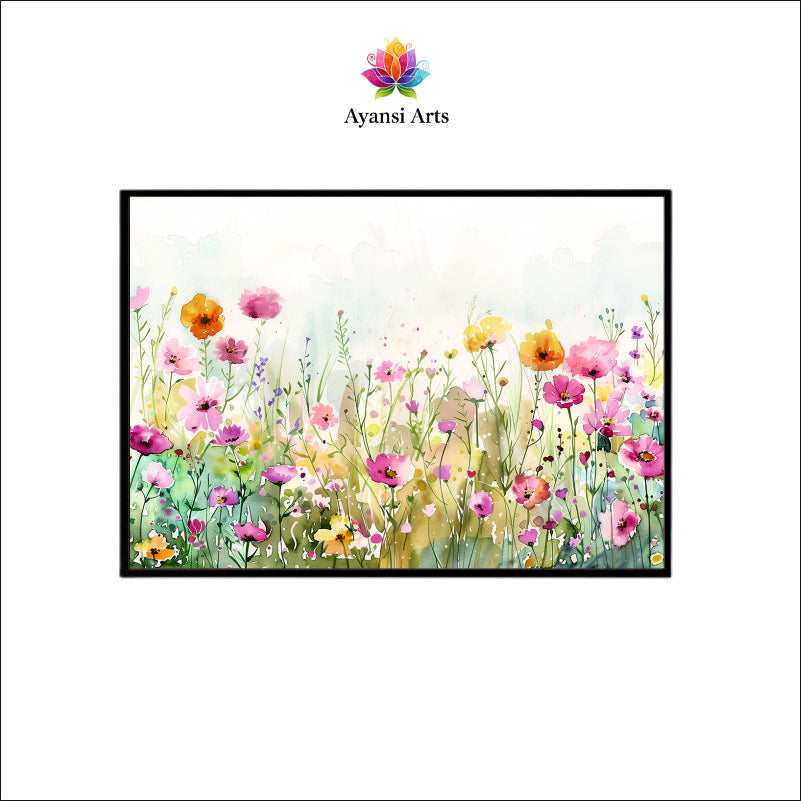 Watercolor Whispers Canvas Digital Painting - Floral Meadow in Bloom