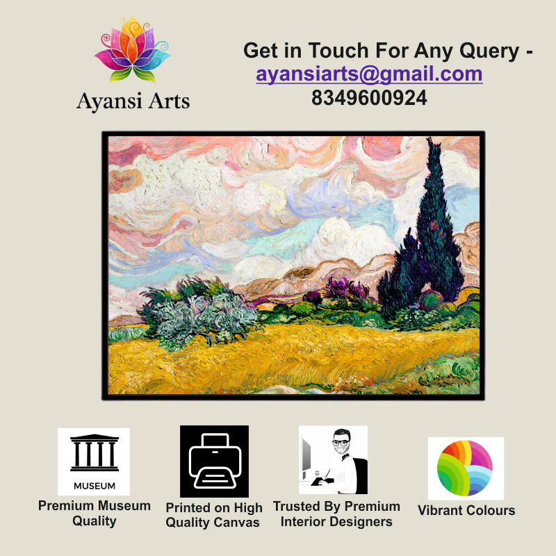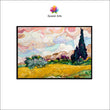 Wheat Field Under Cypress Trees Aesthetic Canvas Digital Painting - Van Gogh Inspired
