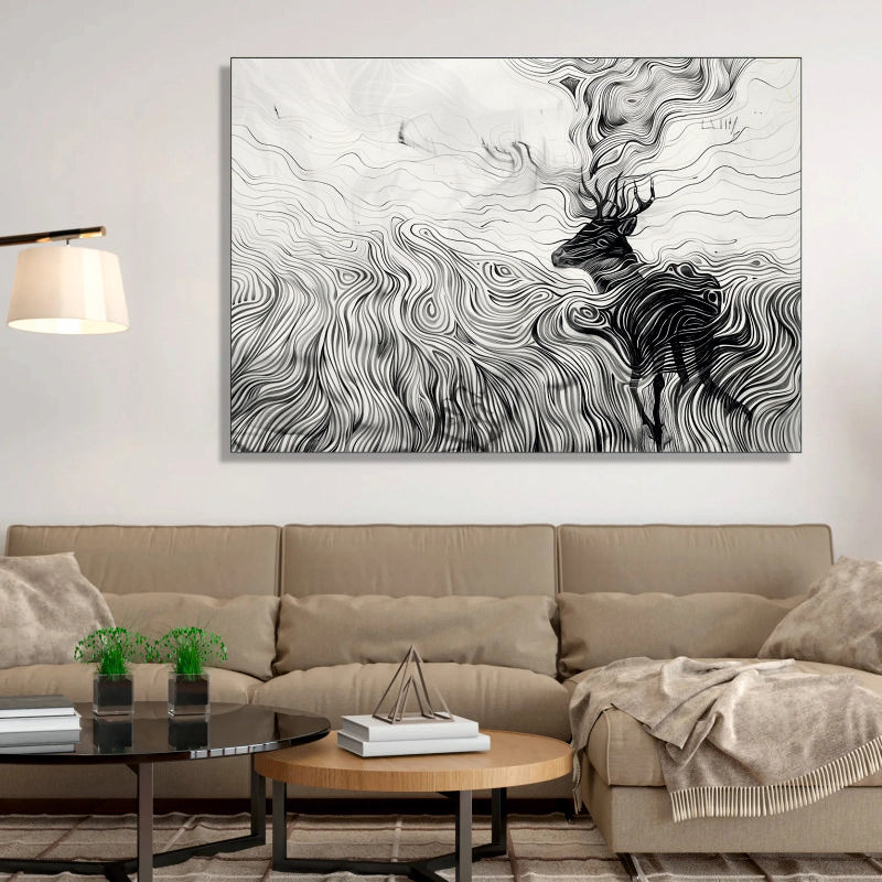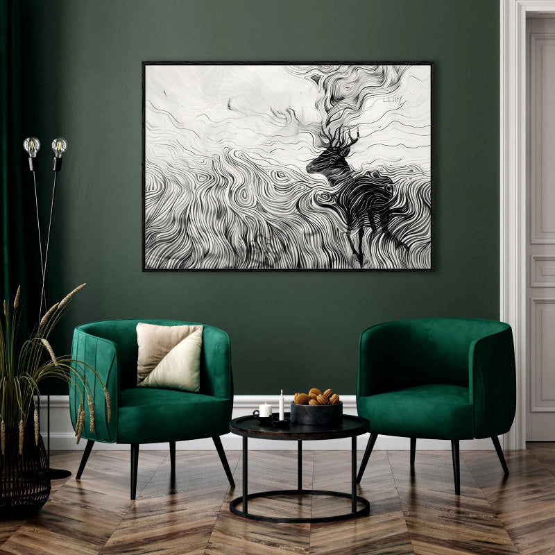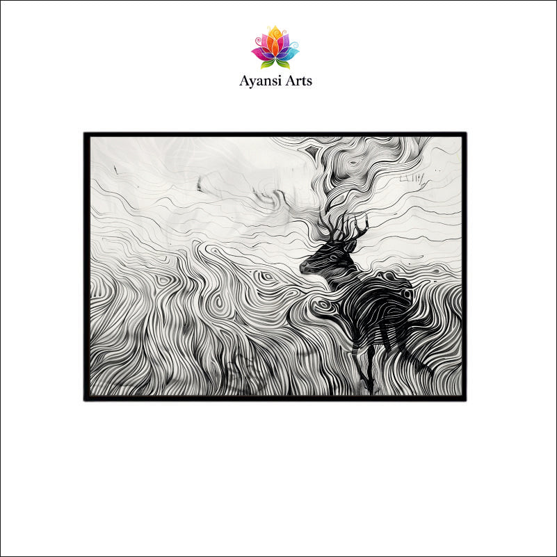 Wind Swept Majesty Canvas Digital Painting - Abstract Deer in Motion