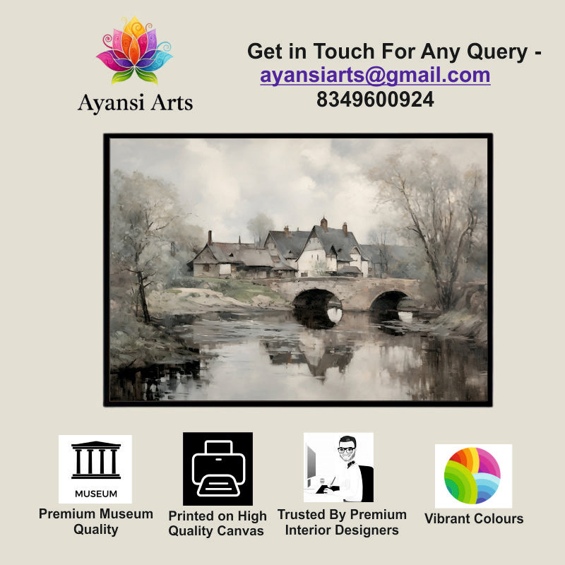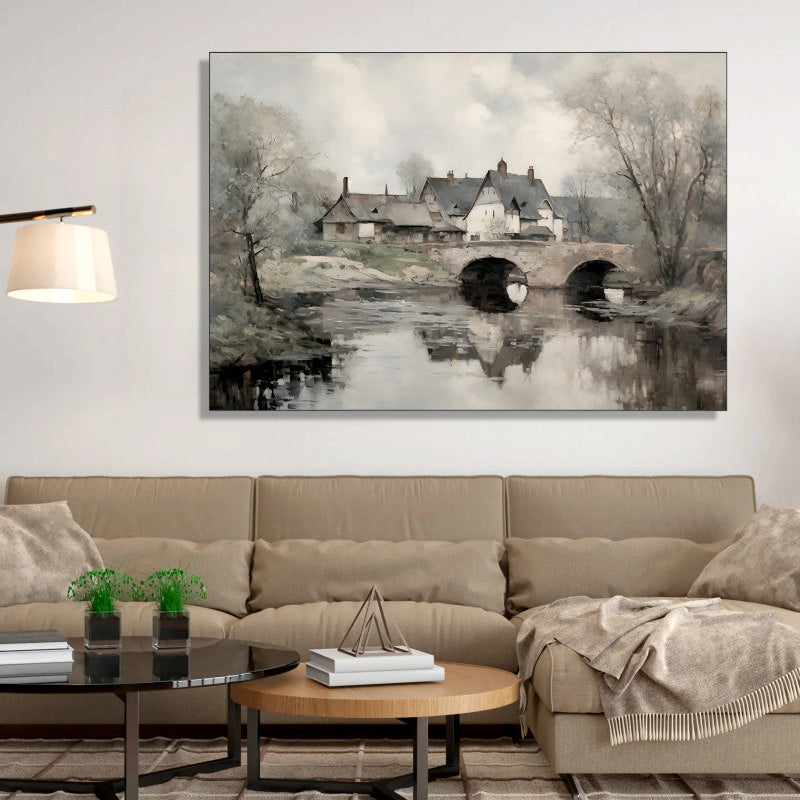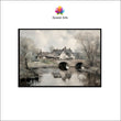 Winter River Crossing with Village Canvas Digital Painting